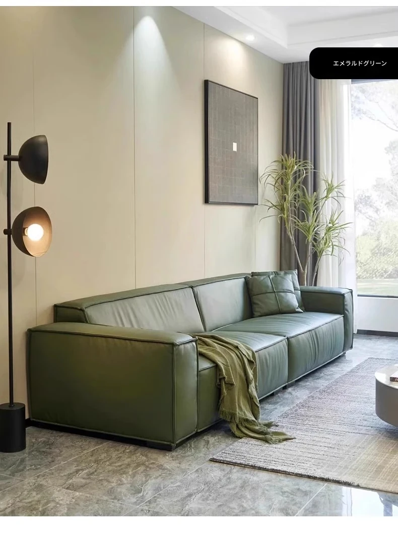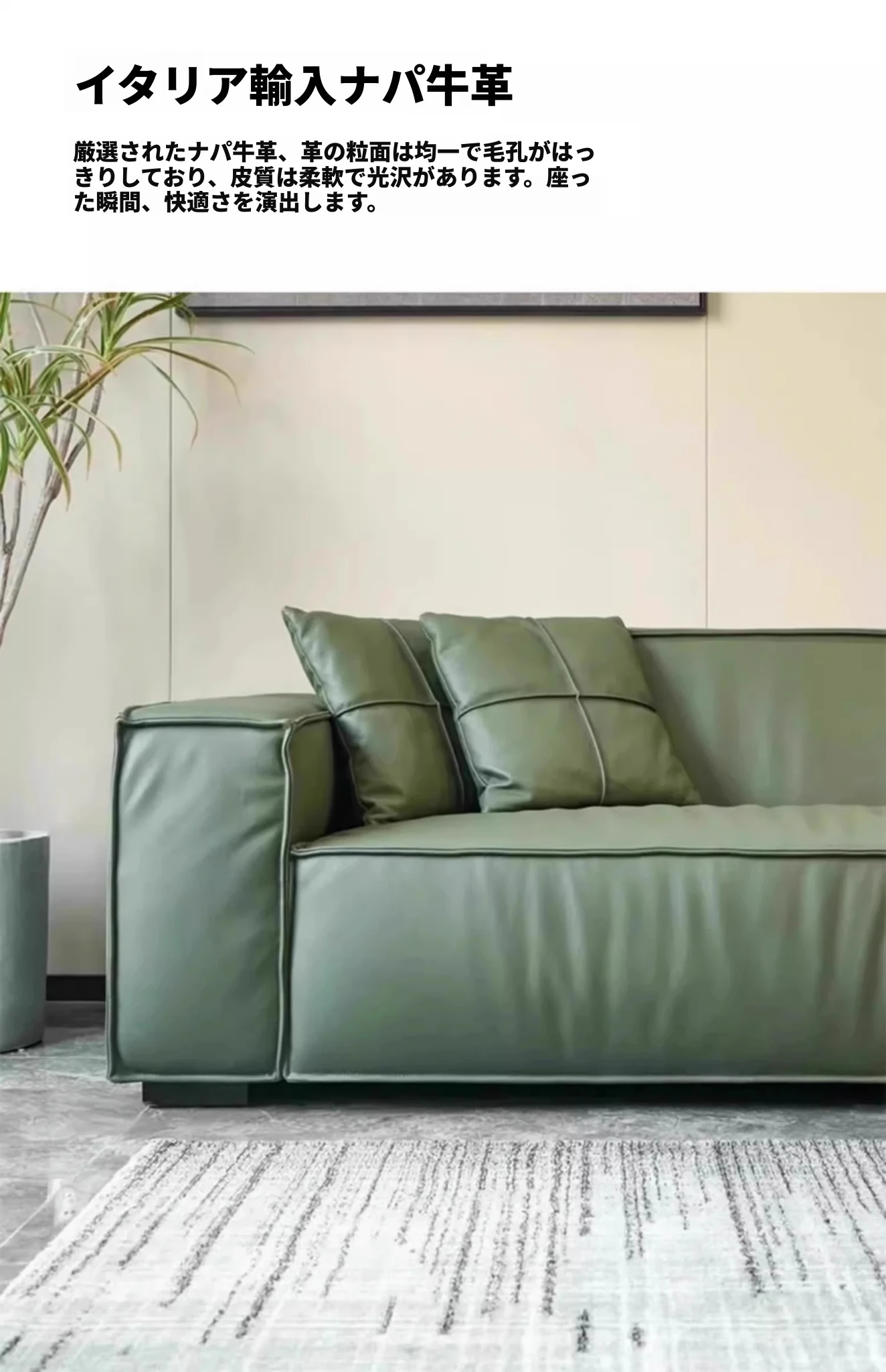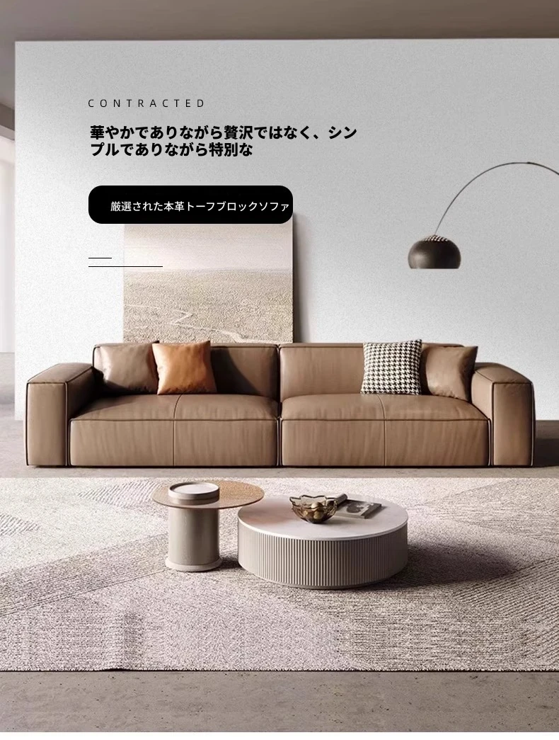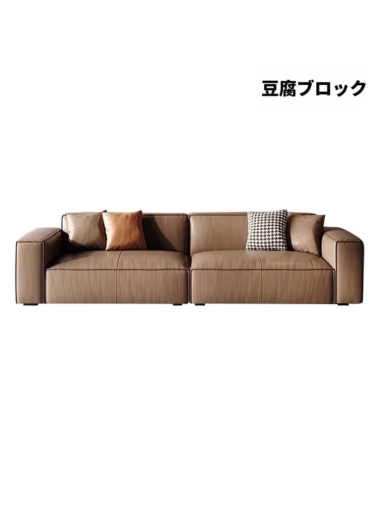 戎匠豆腐ブロック・ネット流行の本革ソファ|イタリア現代シンプルな三人掛け・イタリアンミニマルデザインのストレートレザーソファで、優雅な空間を演出!