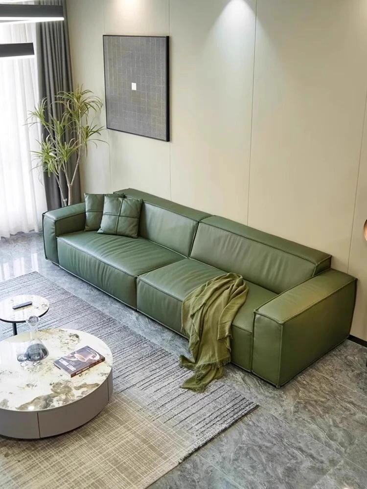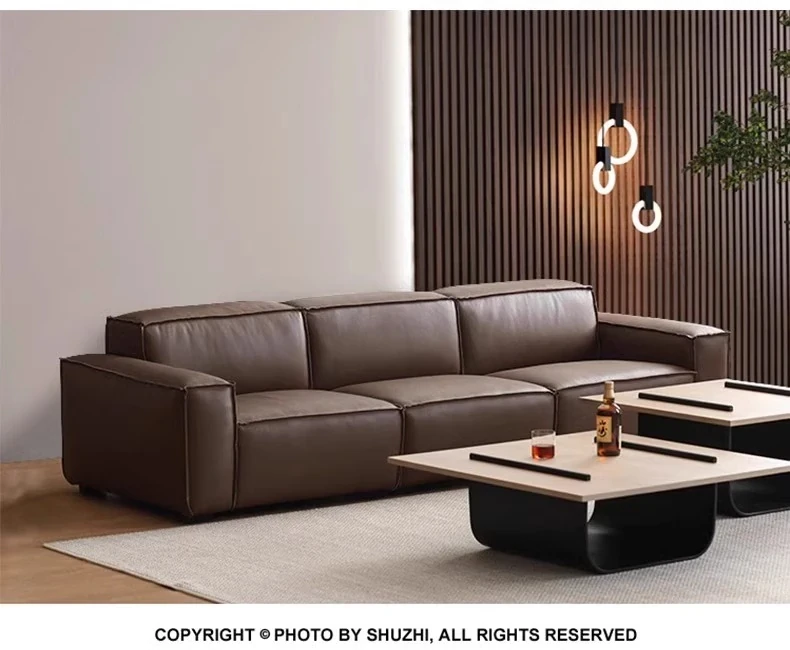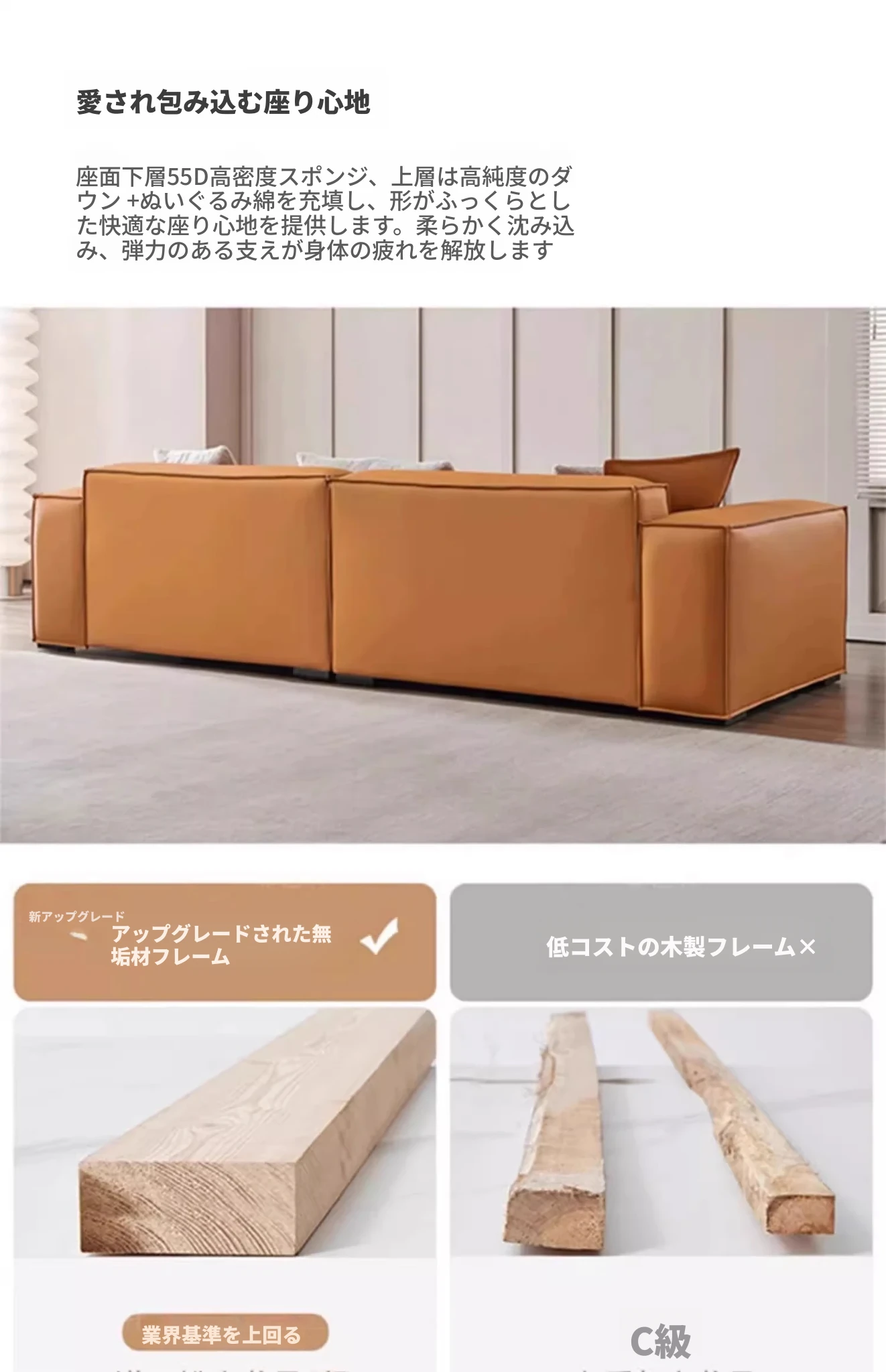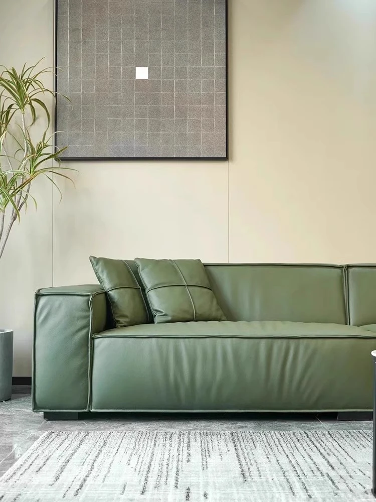 戎匠豆腐ブロック・ネット流行の本革ソファ|イタリア現代シンプルな三人掛け・イタリアンミニマルデザインのストレートレザーソファで、優雅な空間を演出!