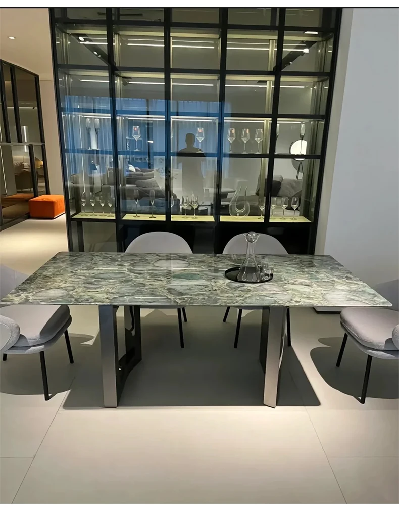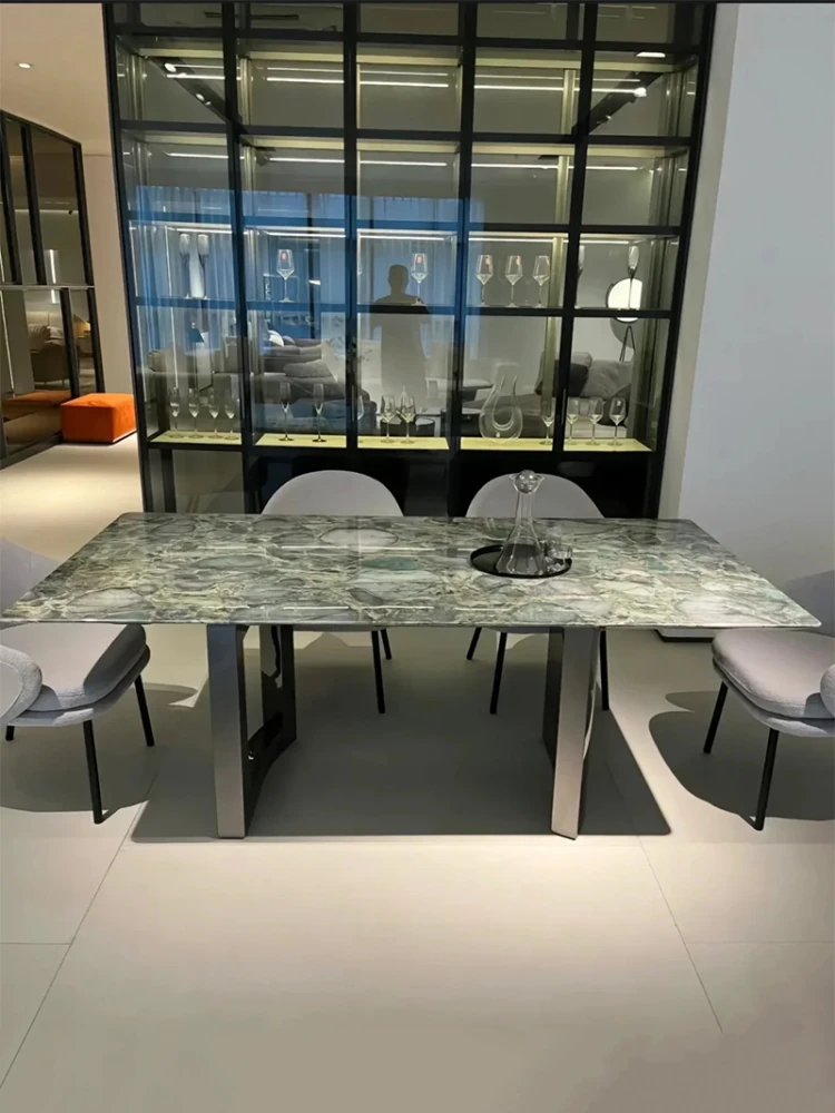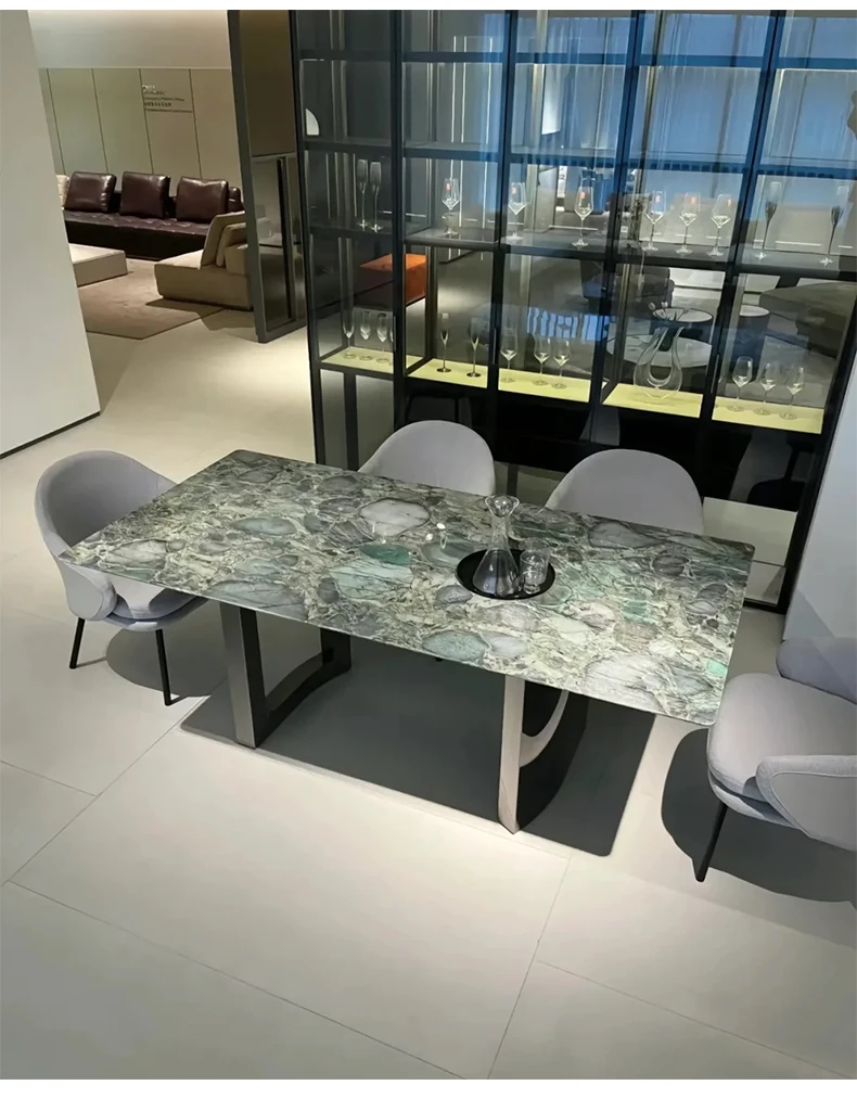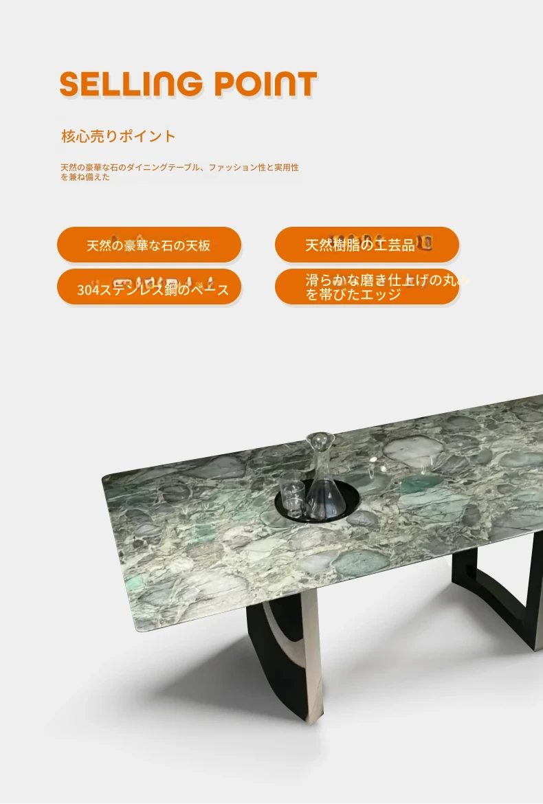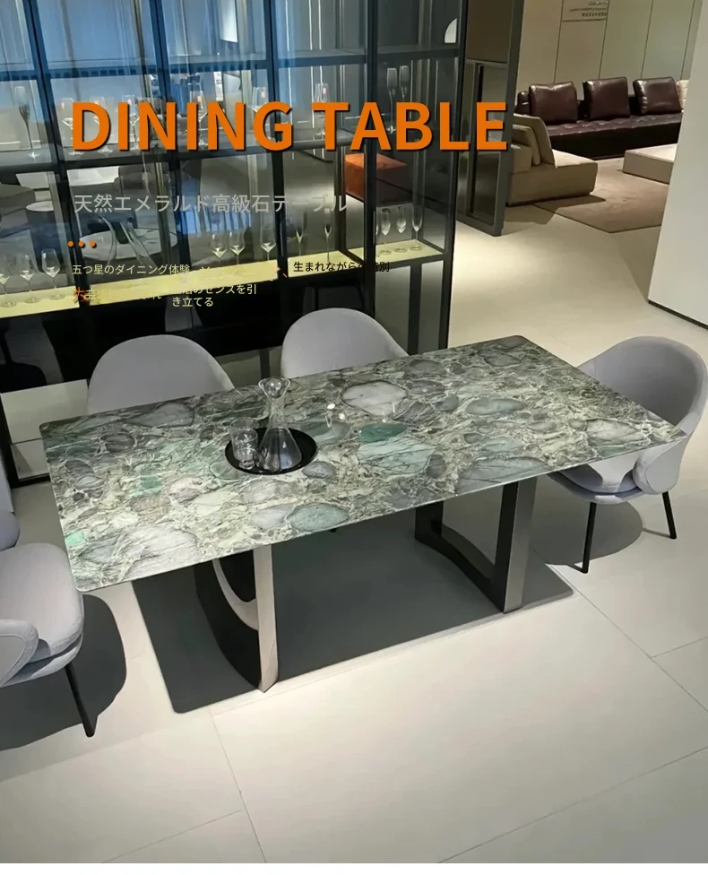 1.8*0.9メートル+8椅子天然エメラルドラグジュアリー石(偽りの場合は十倍の罰)