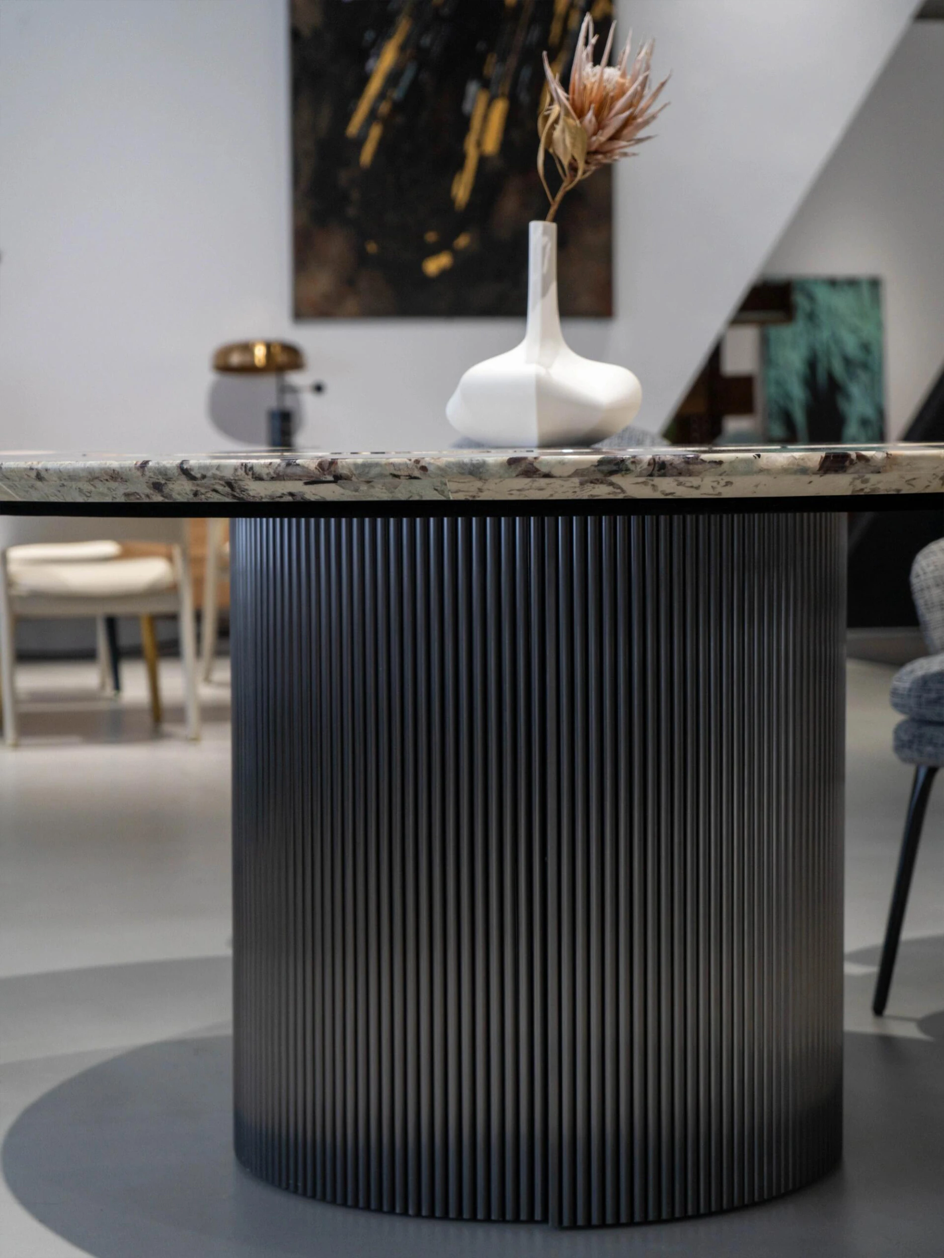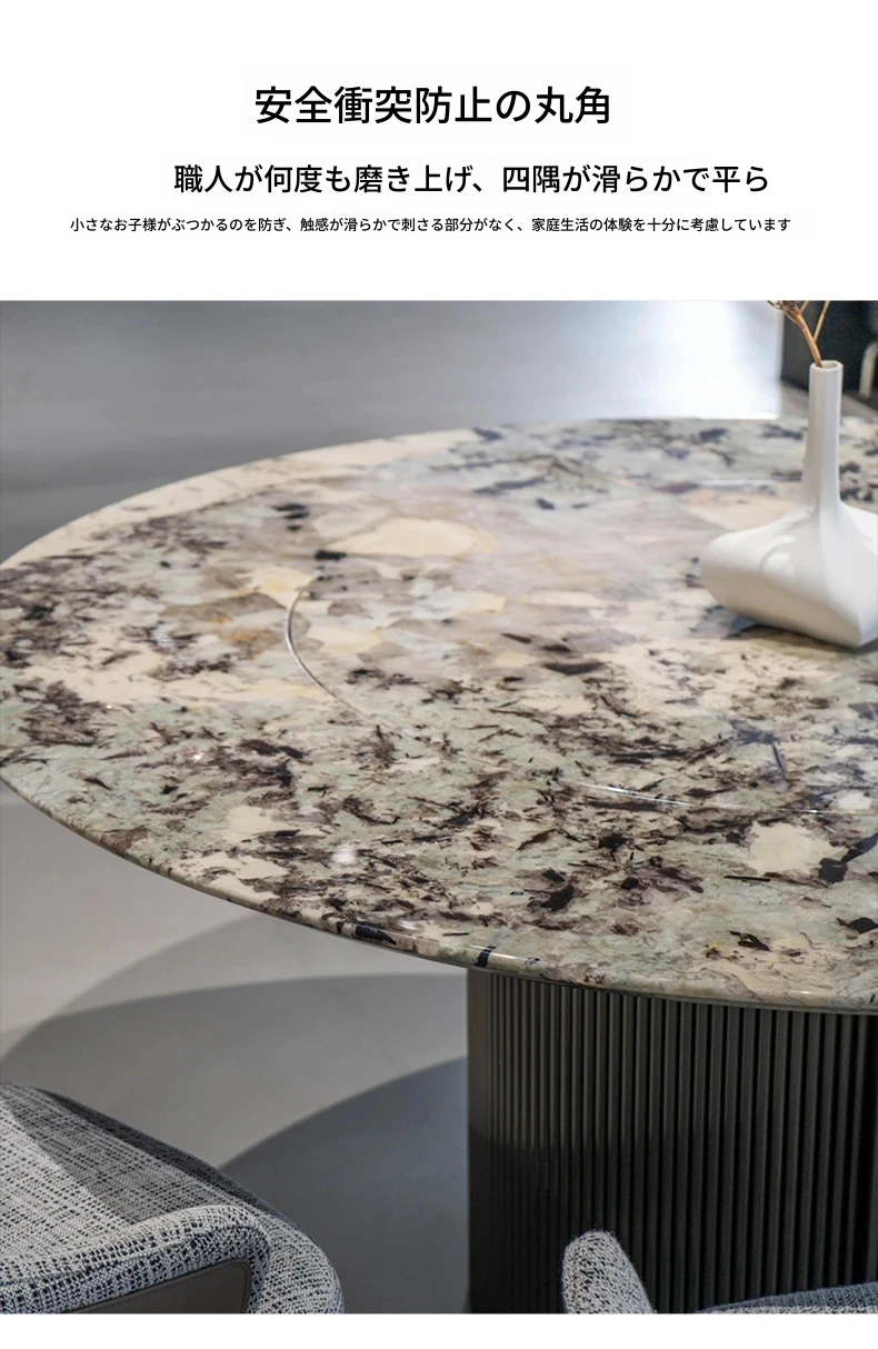 1.35メートル+70回転テーブル天然雪山飛狐高級石材ダイニングテーブル(偽物は十倍の罰)