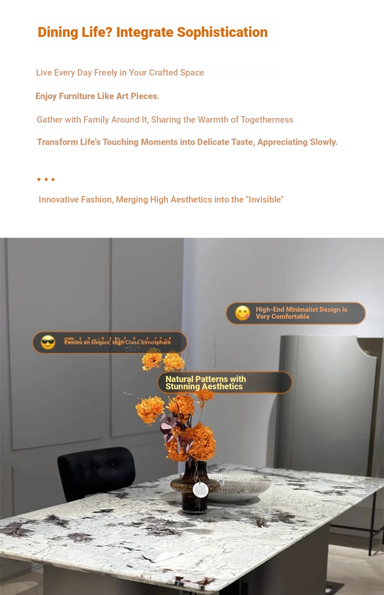 86.61in*39.37ins +8 chairs snow mountain orchid luxury stone (false one penalty ten)
