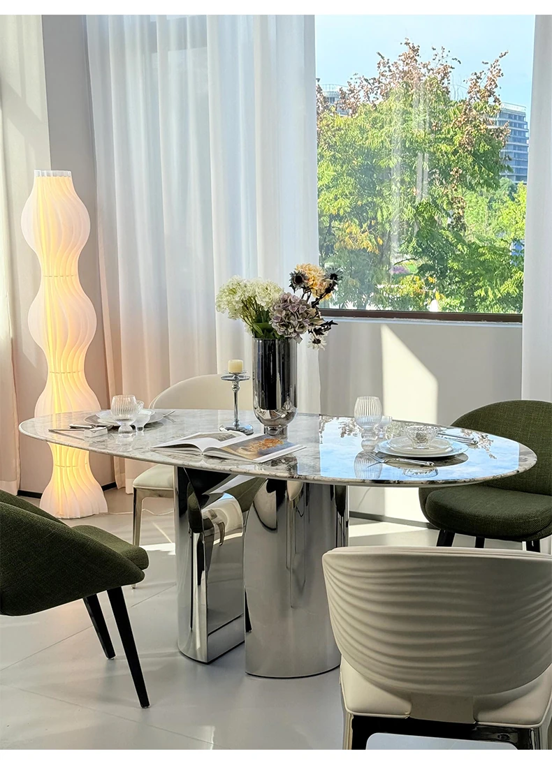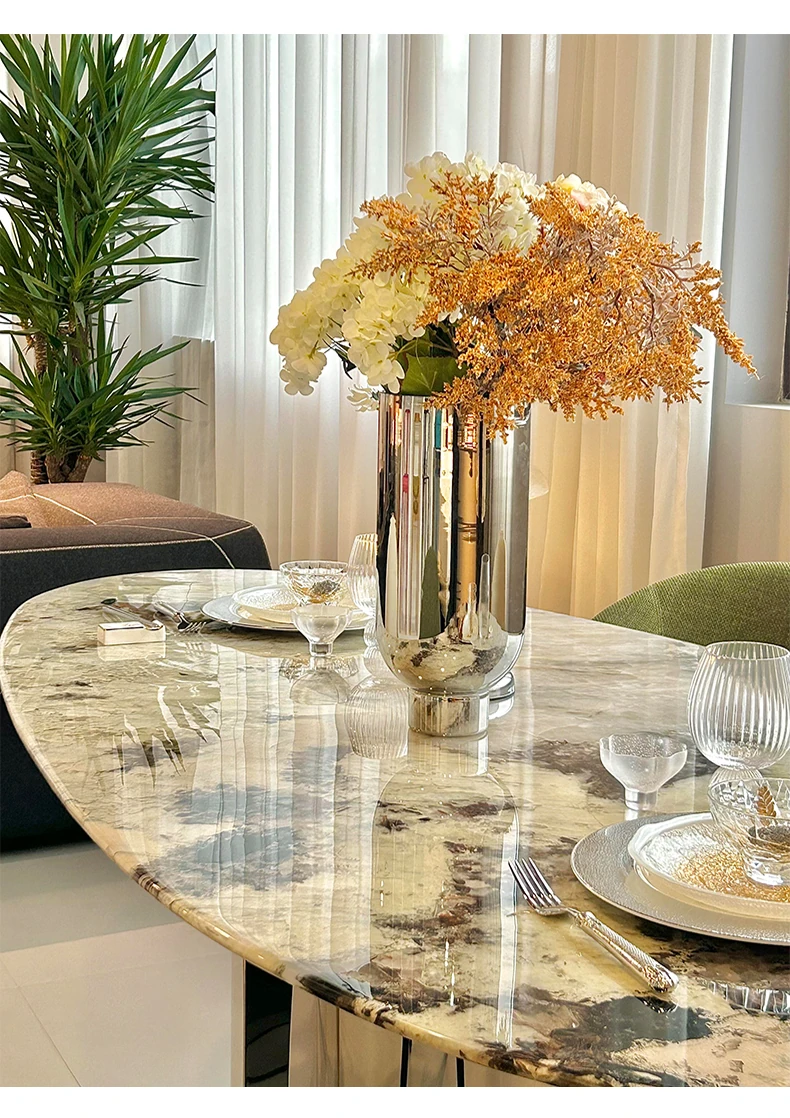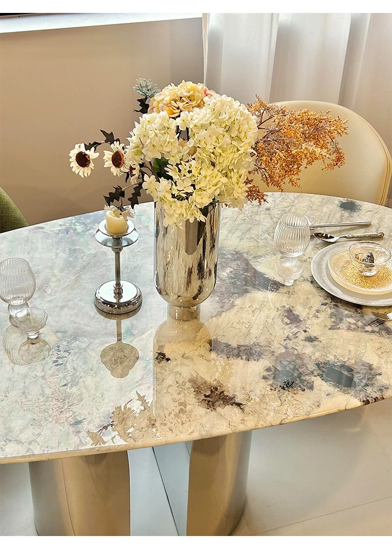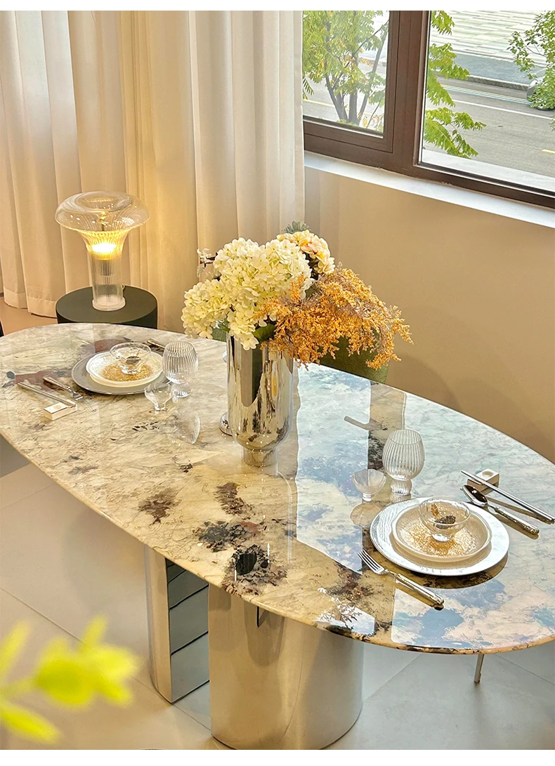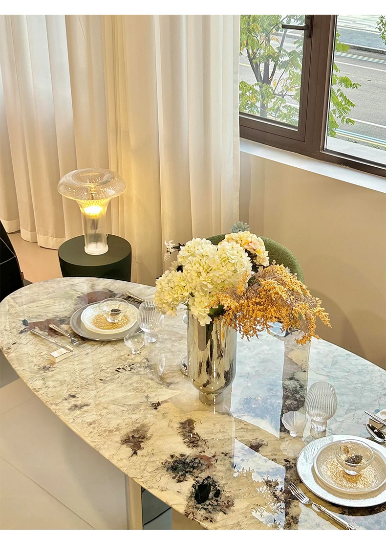 2.4*1.0メートル+6椅子雪山ラン奢石ダイニングテーブル(偽物の場合は10倍の罰金)
