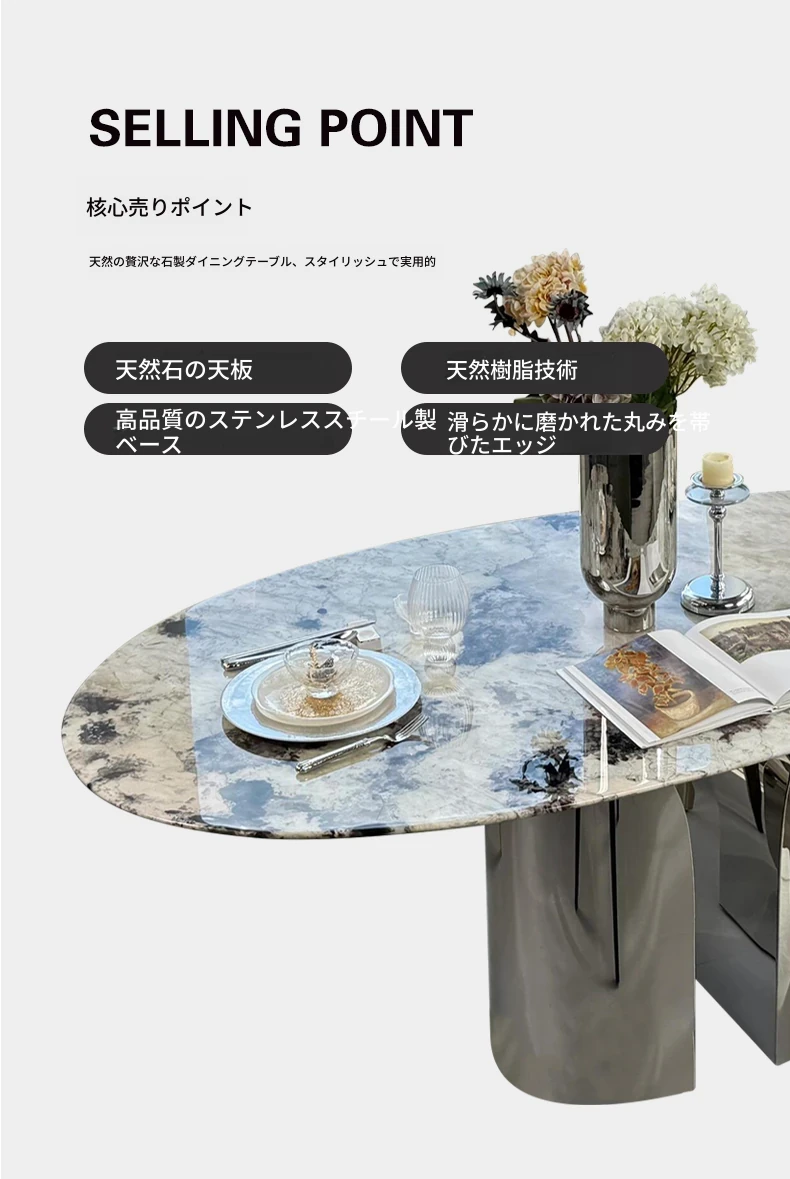 2.4*1.0メートル+8椅子雪山ラン奢石ダイニングテーブル(偽物の場合は10倍の罰金)