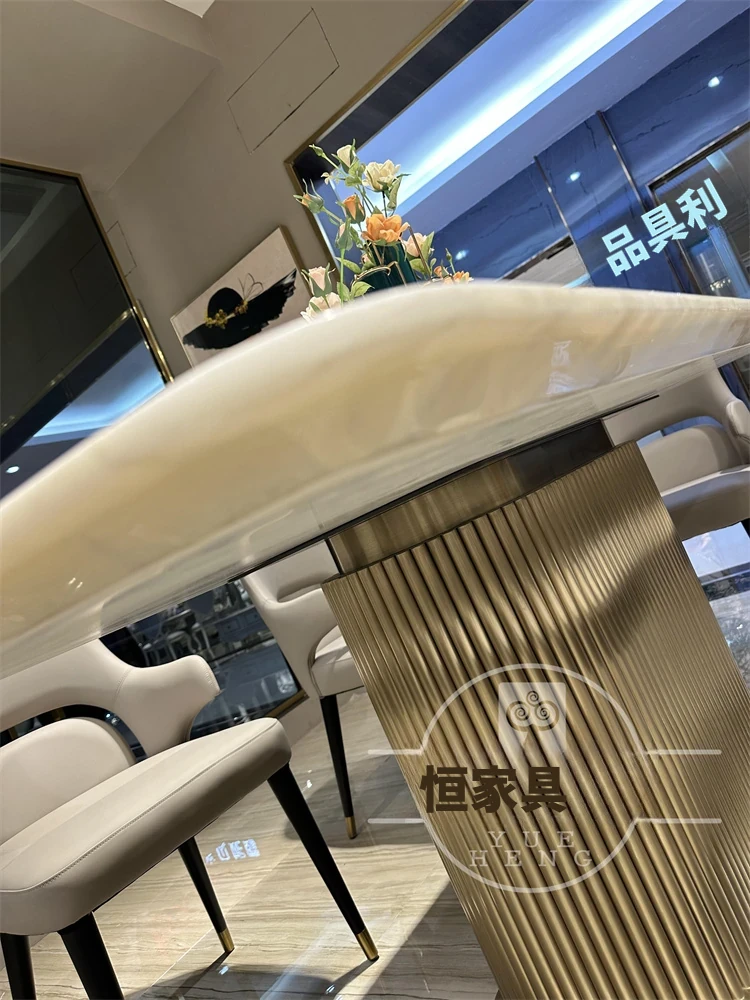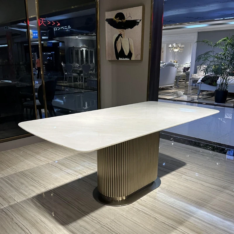 天然石の豪華な160+90単体テーブル(椅子なし)ステンレス脚