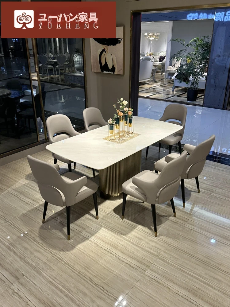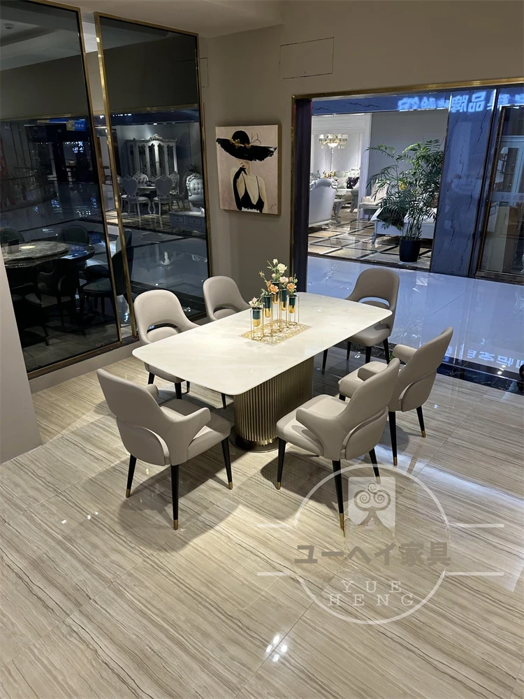 天然石の豪華な1.8メートル+90テーブル8脚の椅子付き ステンレス脚