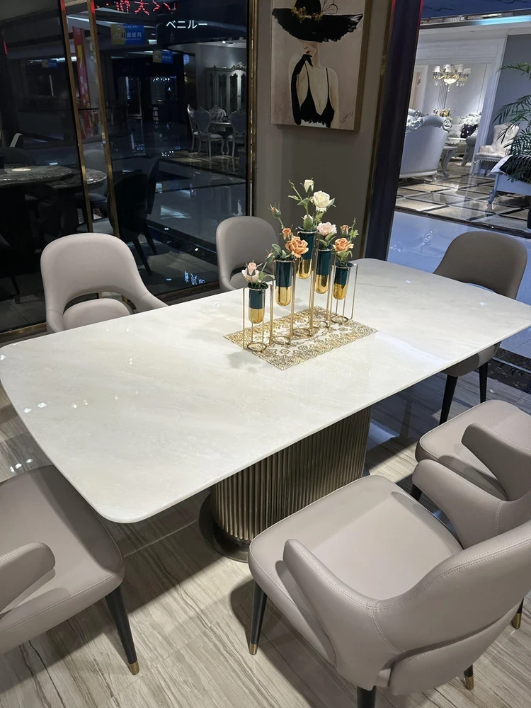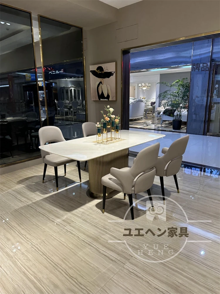 天然石の豪華な1.8メートル+90テーブル6脚の椅子付き ステンレス脚