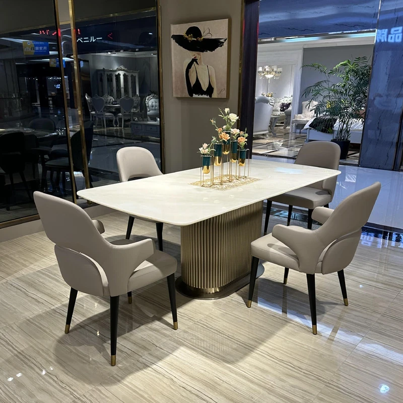 天然石の豪華な160+90テーブル6脚の椅子付き価格 ステンレス脚