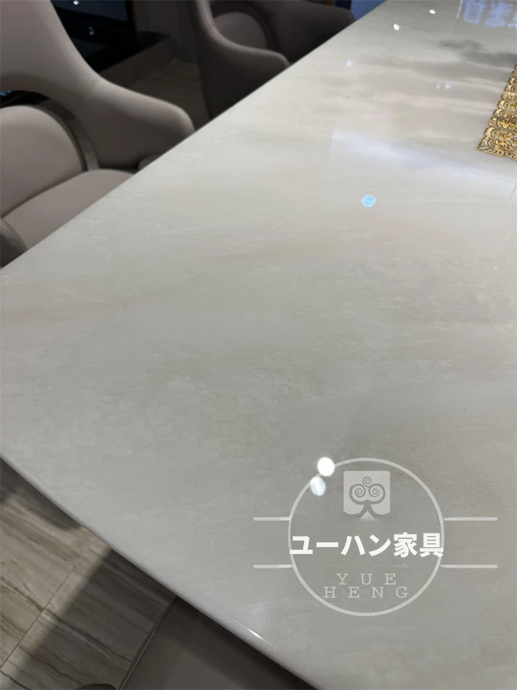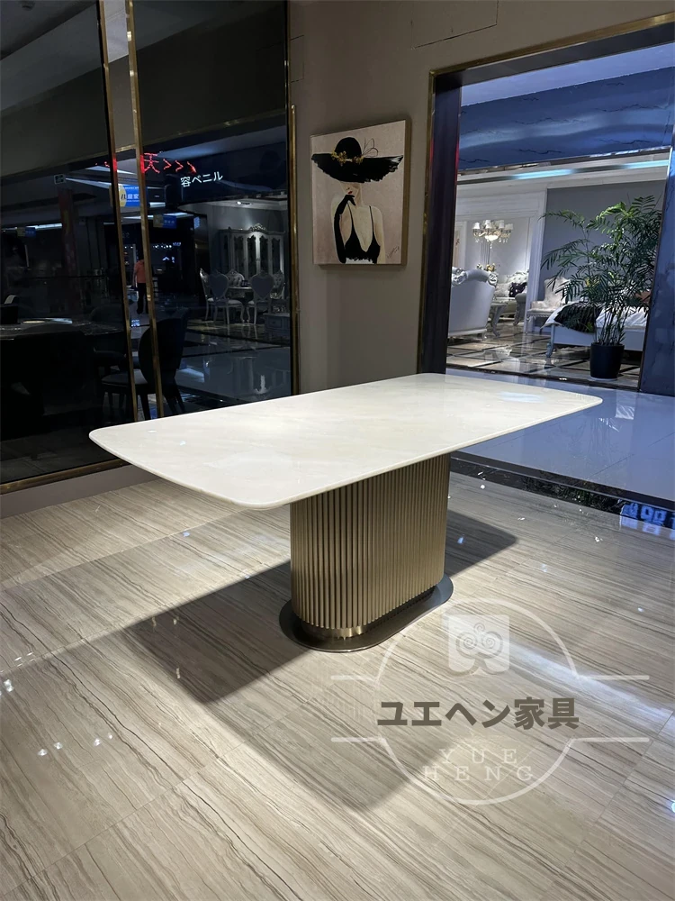 天然石の豪華な2メートル+1メートルのテーブル(椅子なし)ステンレス脚