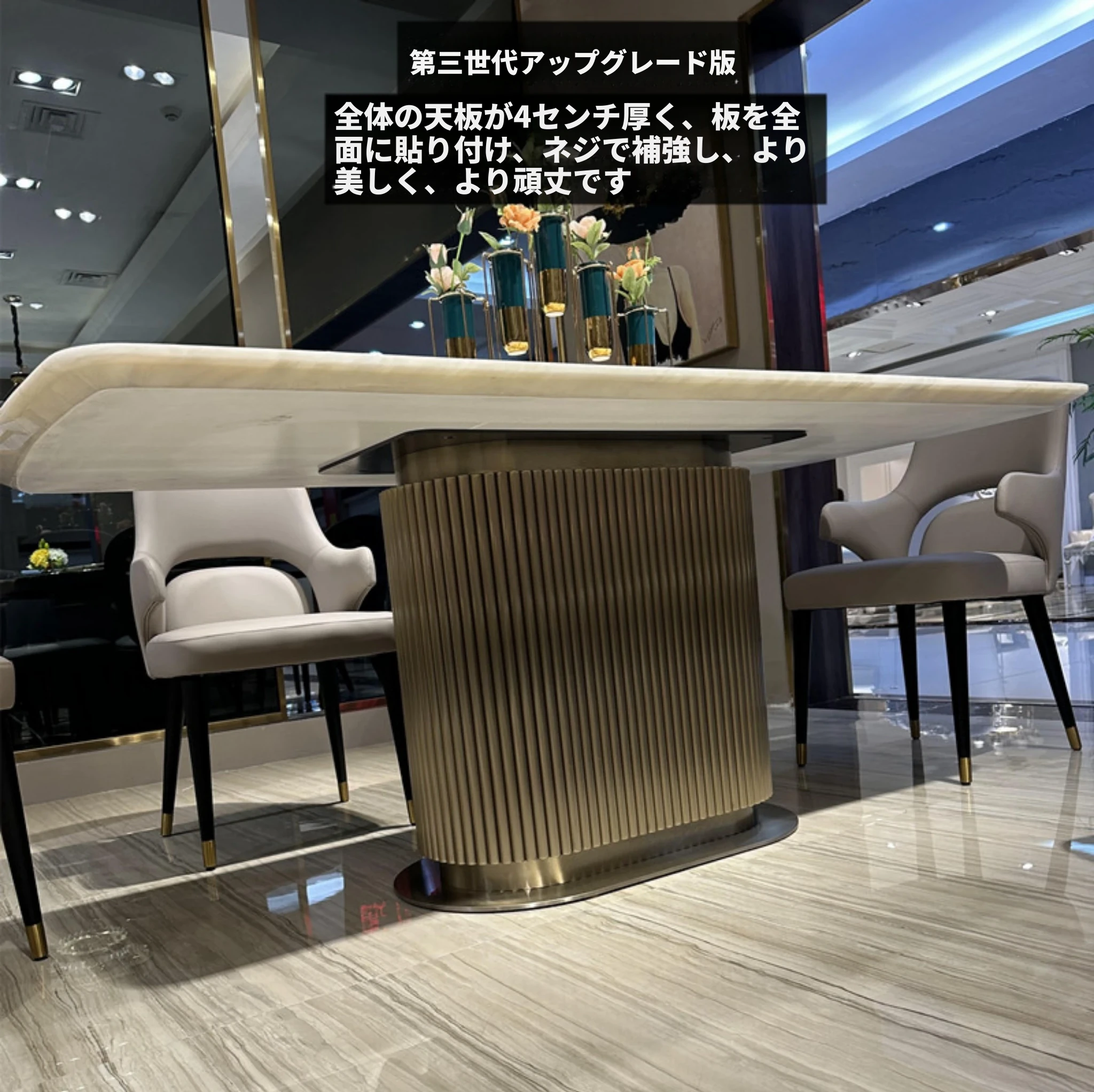 天然石の豪華な2メートル+1メートルのテーブル6脚の椅子付き ステンレス脚