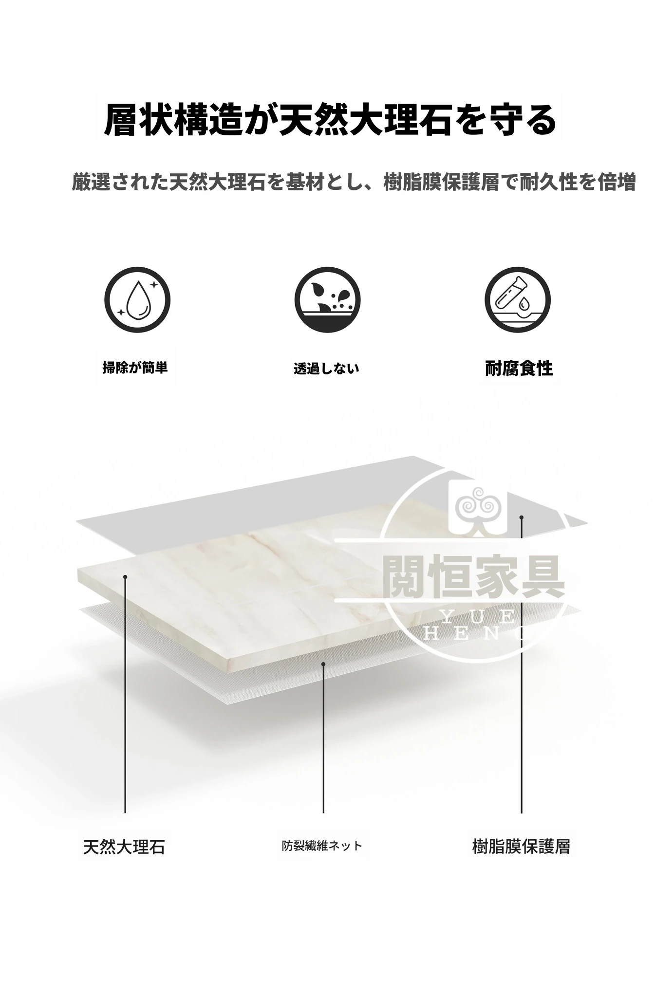 天然石の豪華な180+90単体テーブル(椅子なし)ステンレス脚