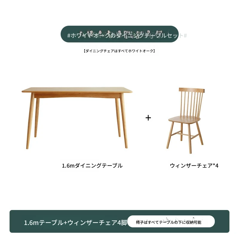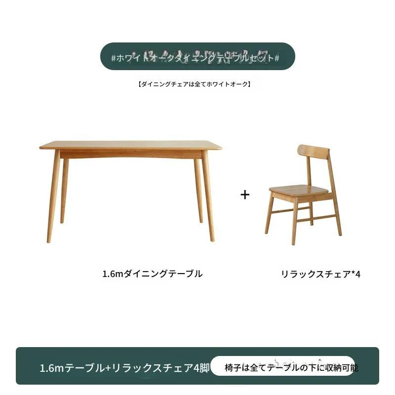 【ホワイトオーク】1.6m+4脚 マンマンダイニングチェア