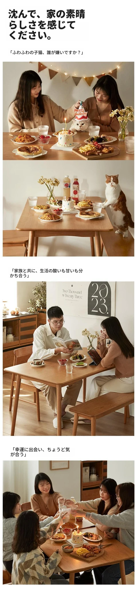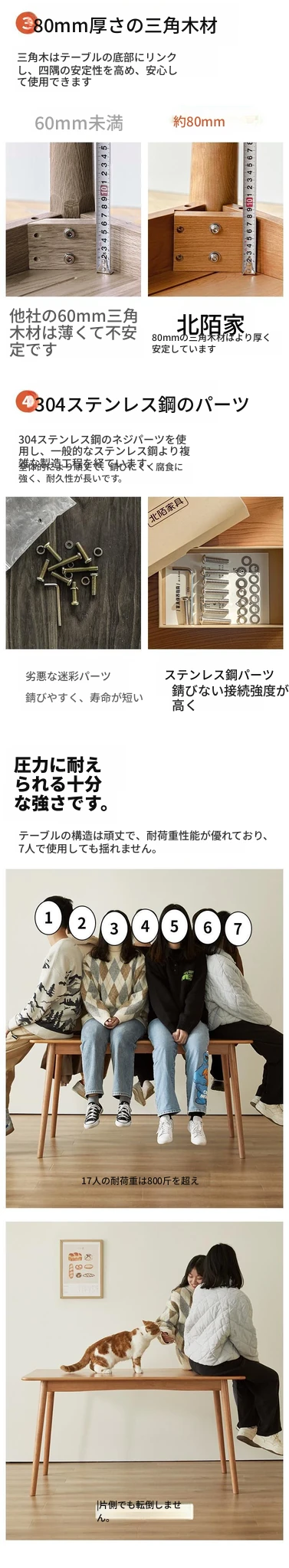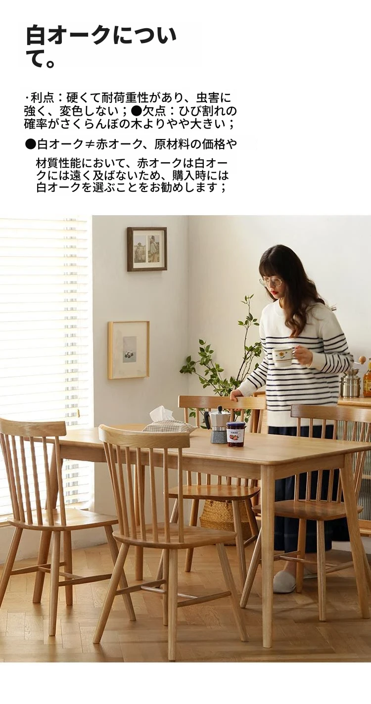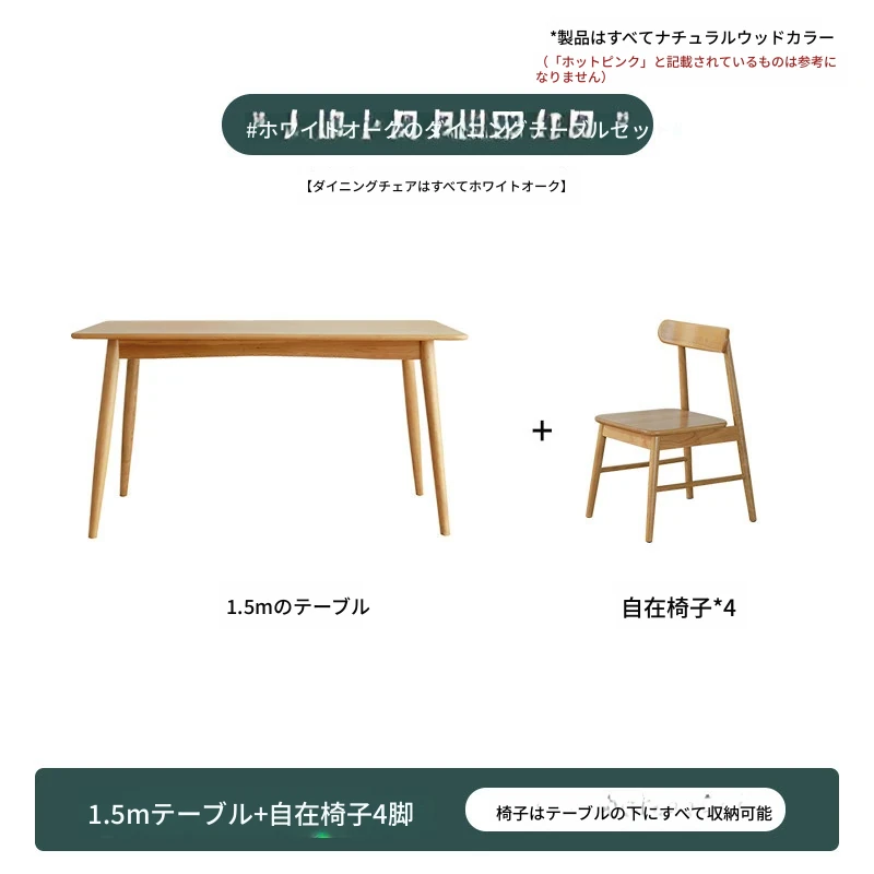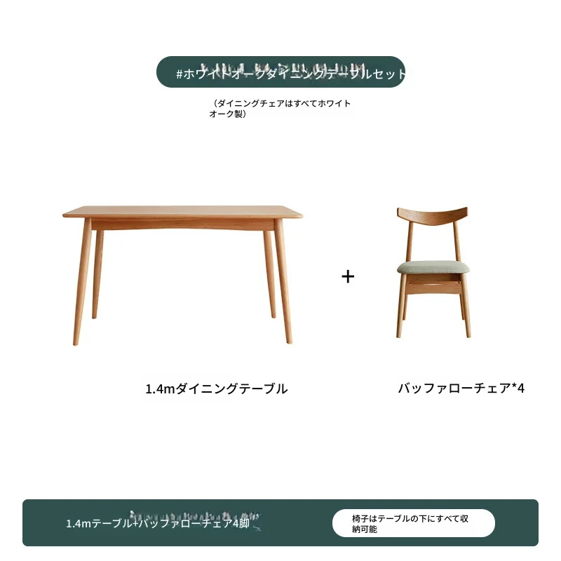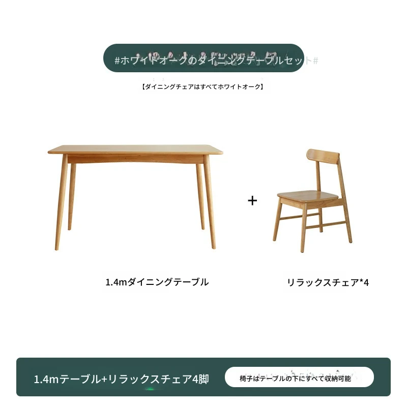 【ホワイトオーク】1.4m+4脚 マンマンダイニングチェア