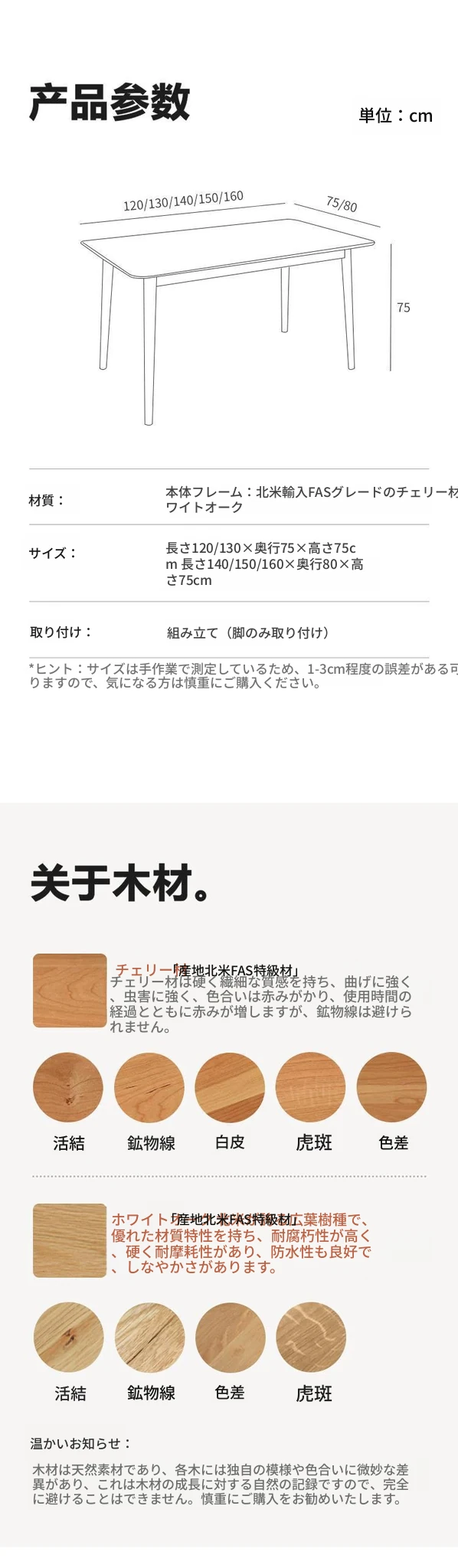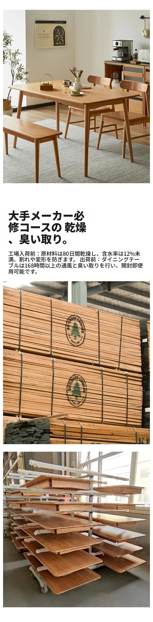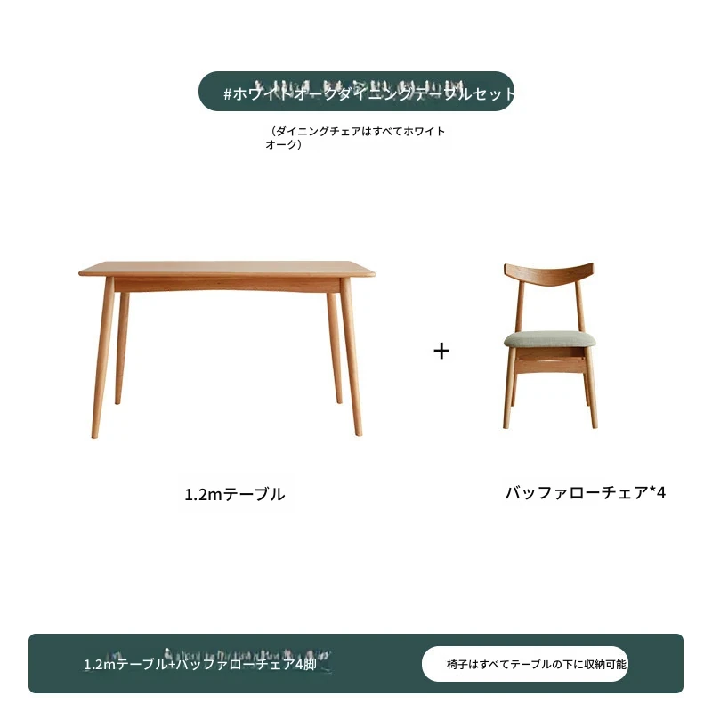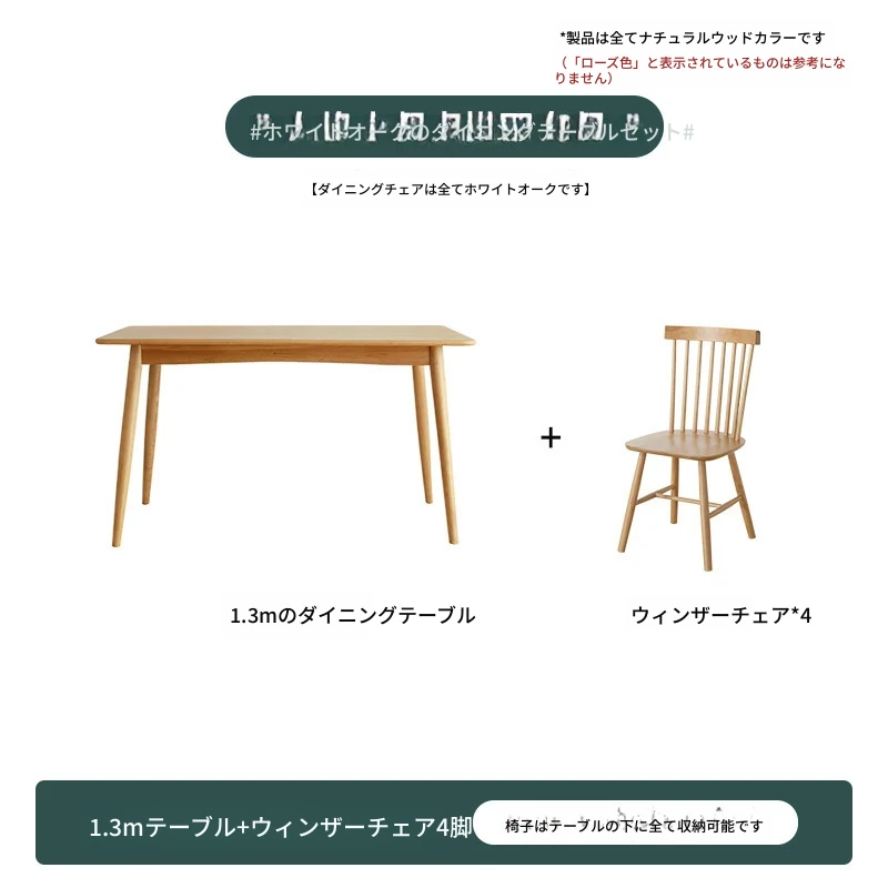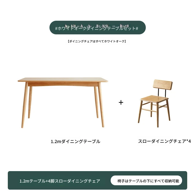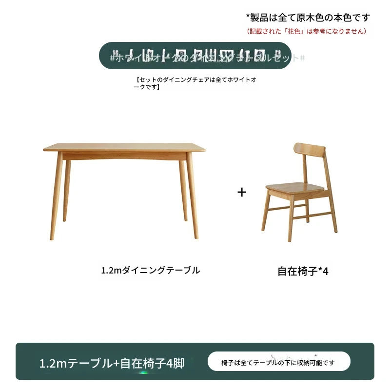 【ホワイトオーク】1.2m+4脚 マンマンダイニングチェア