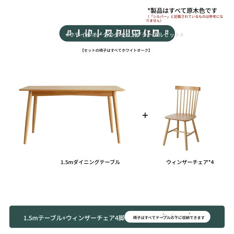 銀色 【ホワイトオーク】1.5M+4脚 ウィンザー椅子