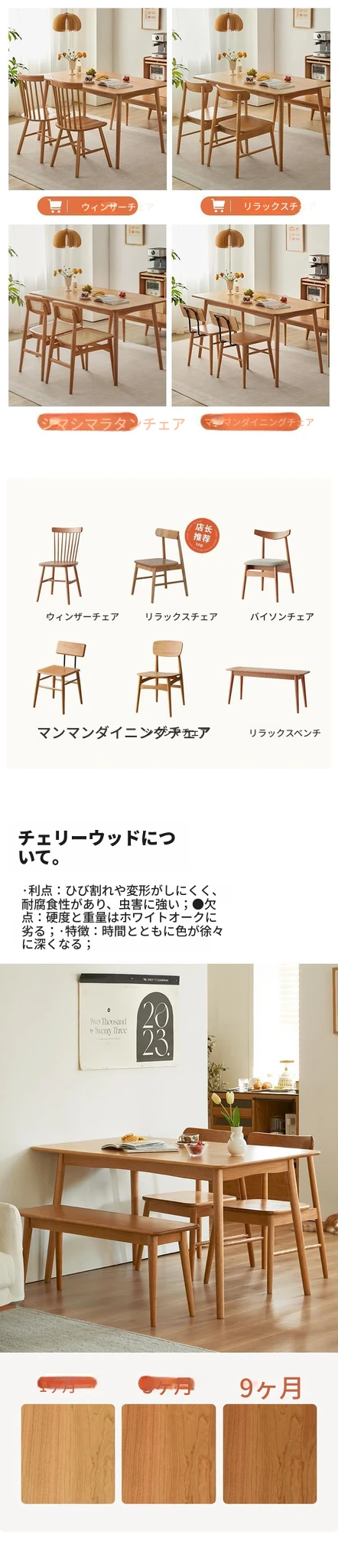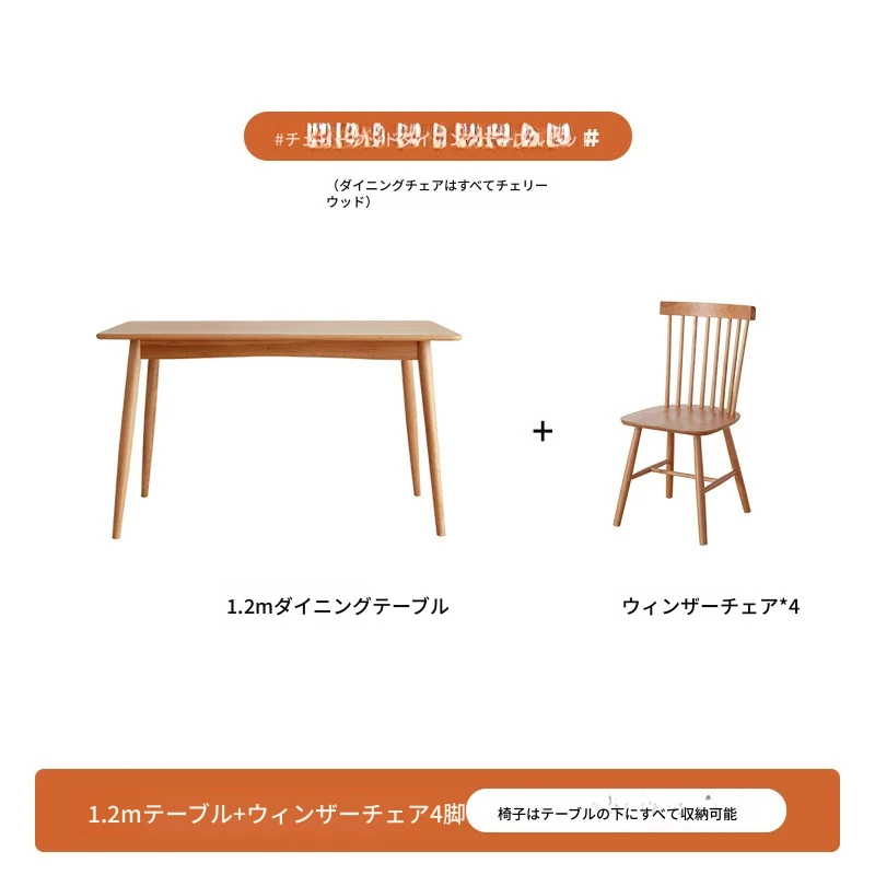 【チェリーウッド】1.2m+4脚 ウィンザー椅子