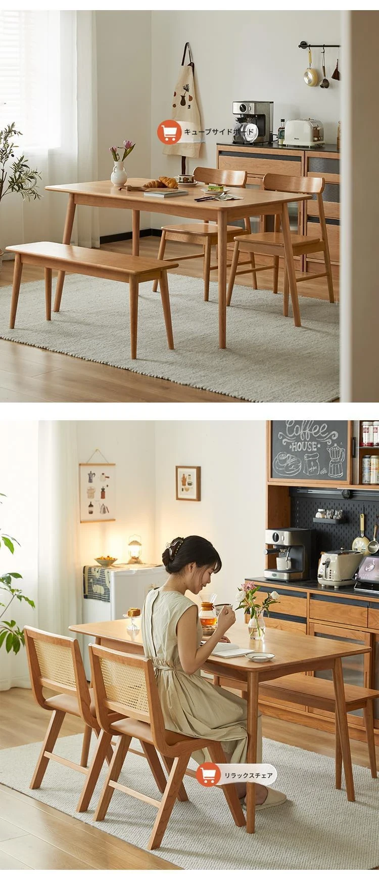 【ホワイトオーク】1.4M+2脚 バッファローチェア+105ベンチ 【ベンチクッション付き】