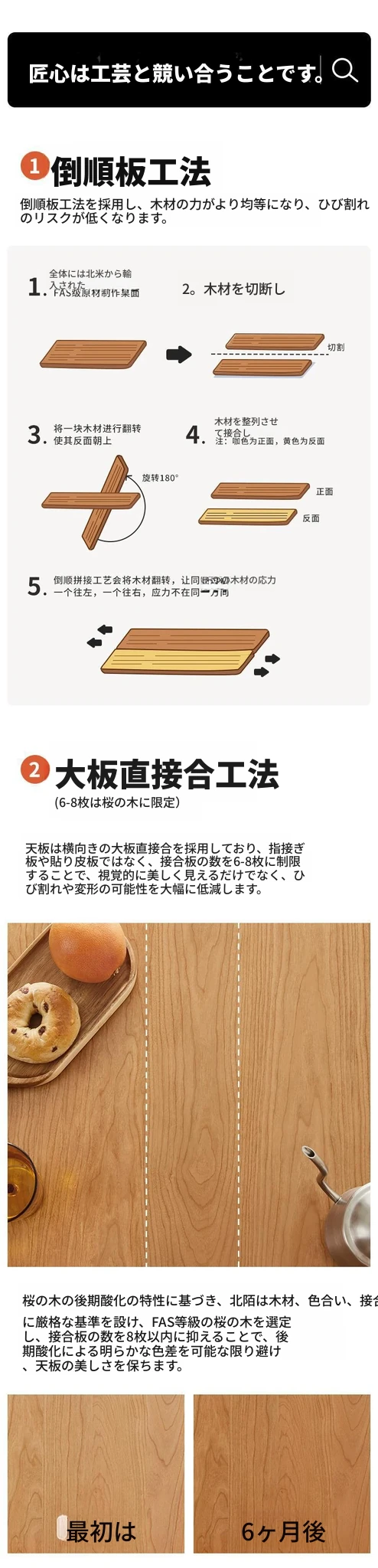 【ホワイトオーク】1.6M+4脚 自在椅子