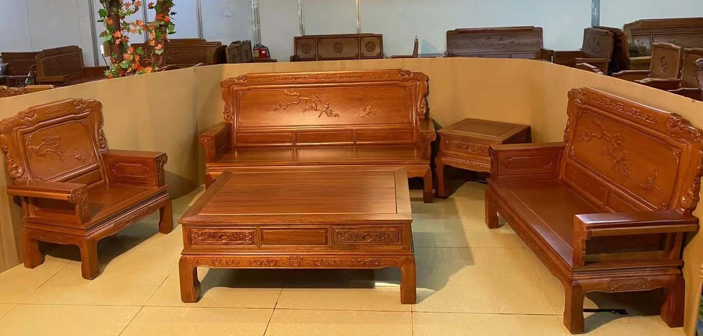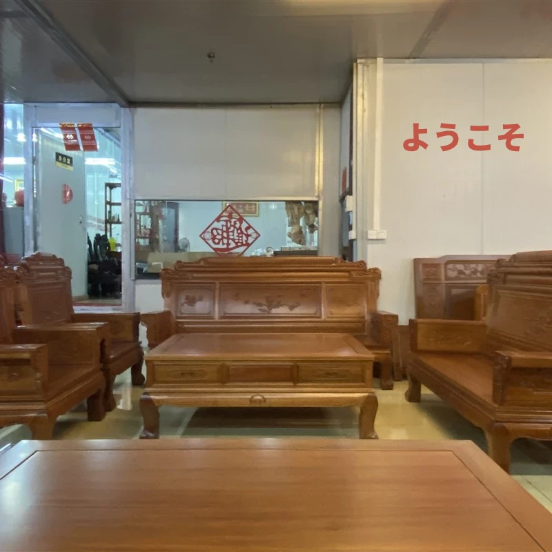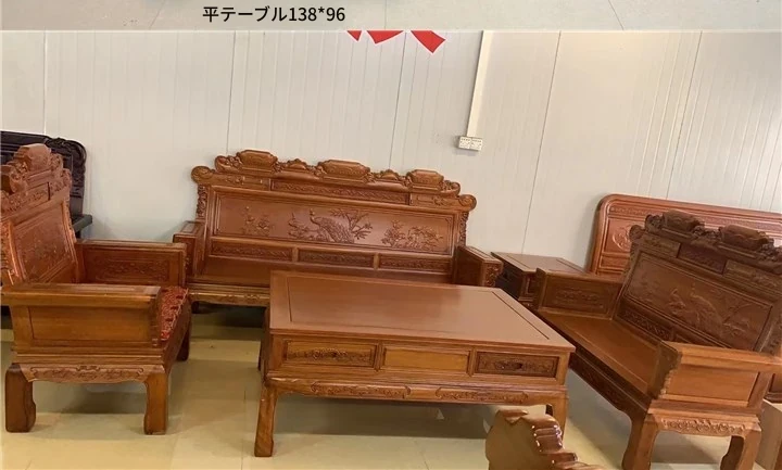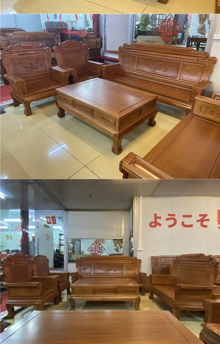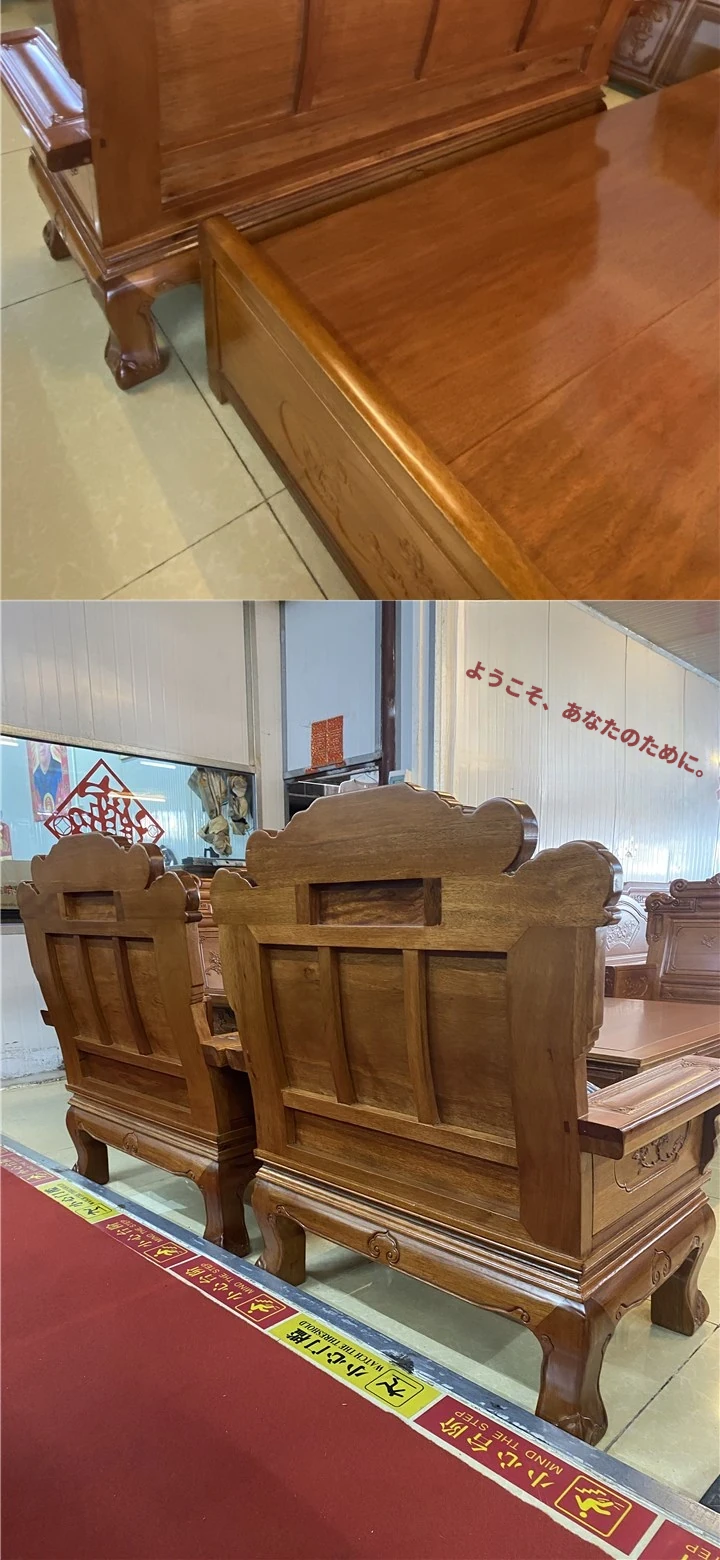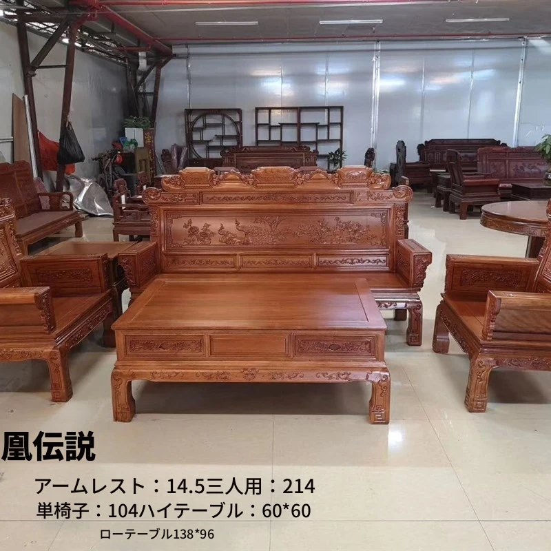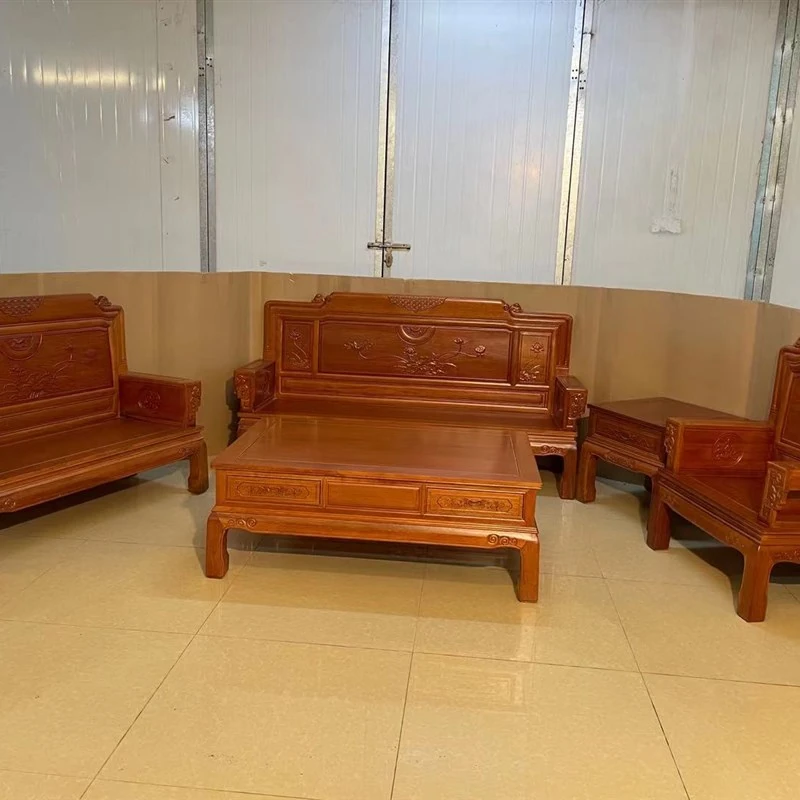 新中式全実木赤檀ソファセット - 菠萝格使用、明清風のアンティークデザイン、広々としたリビングに最適な高級家具、金色の花梨木で贅沢な空間を演出!