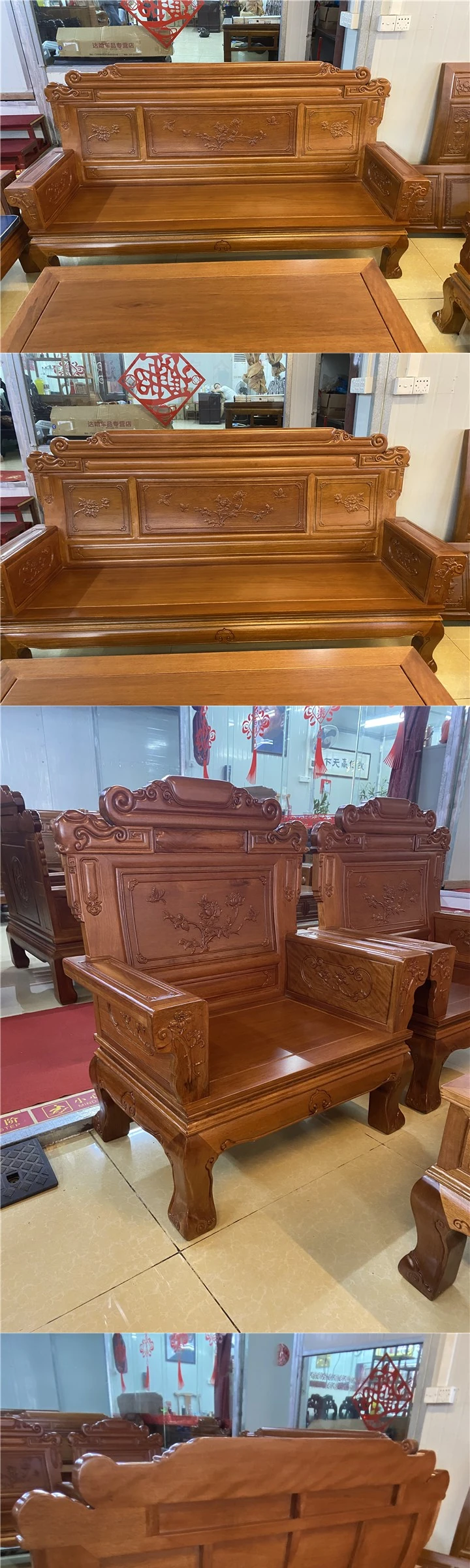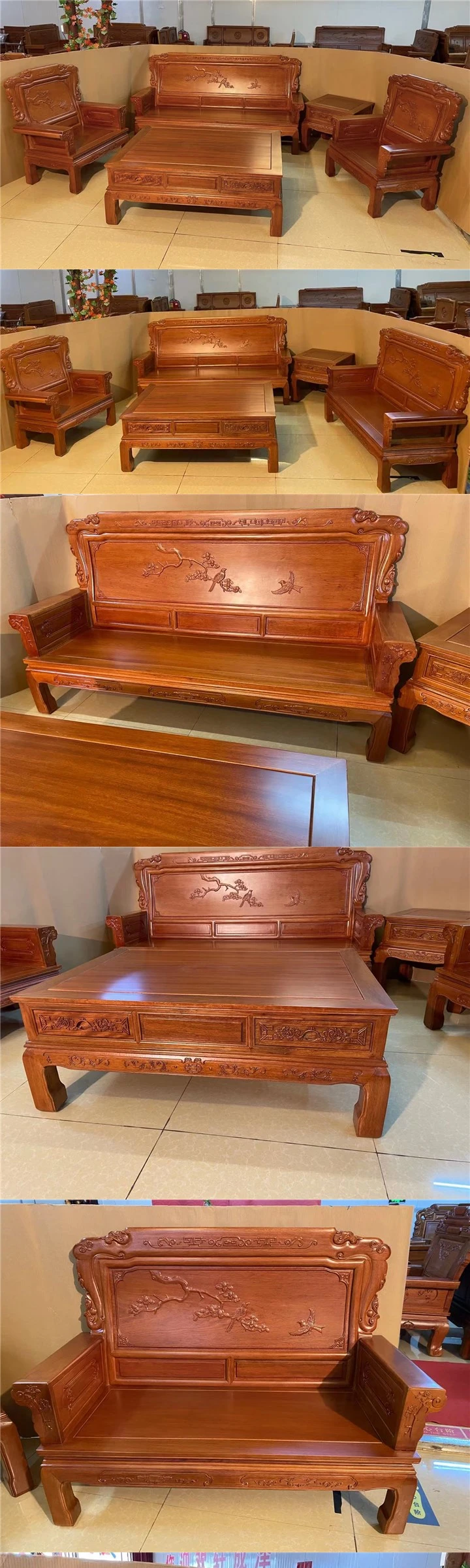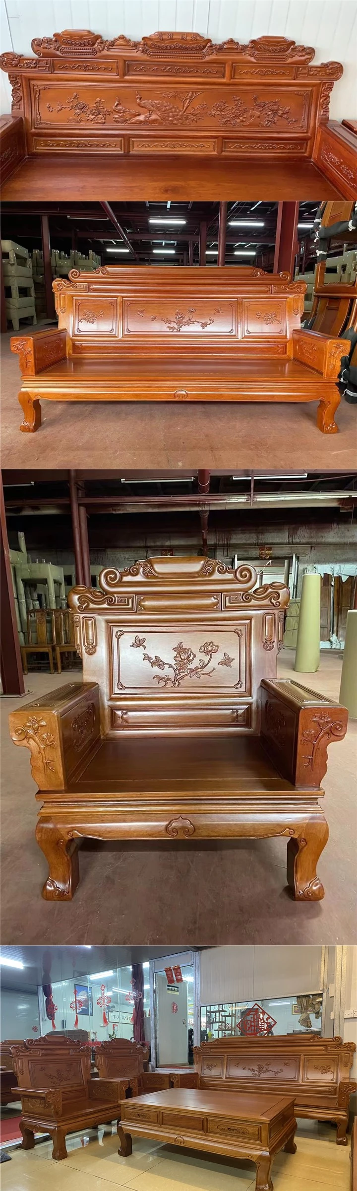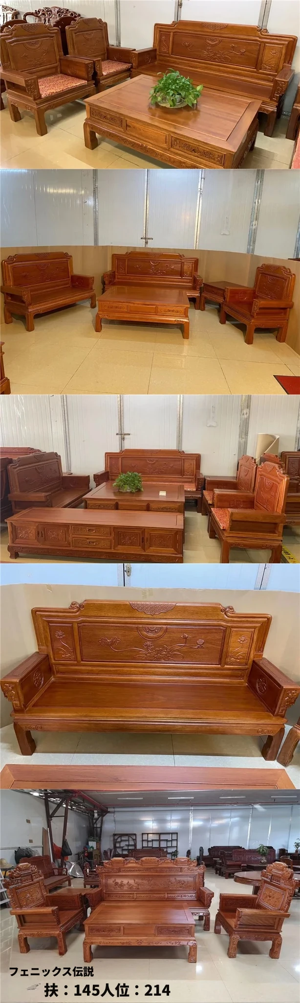 新中式全実木赤檀ソファセット - 菠萝格使用、明清風のアンティークデザイン、広々としたリビングに最適な高級家具、金色の花梨木で贅沢な空間を演出!