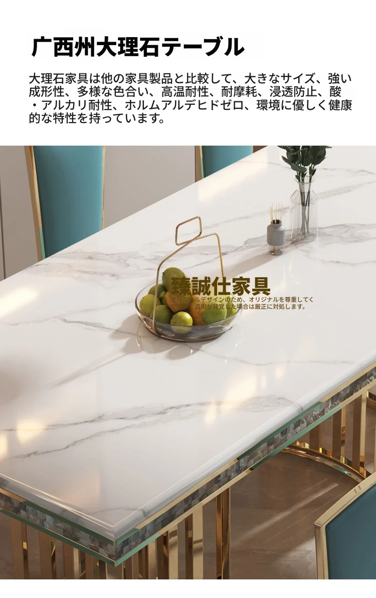 180*90 魚の腹白大理石のみのダイニングテーブル