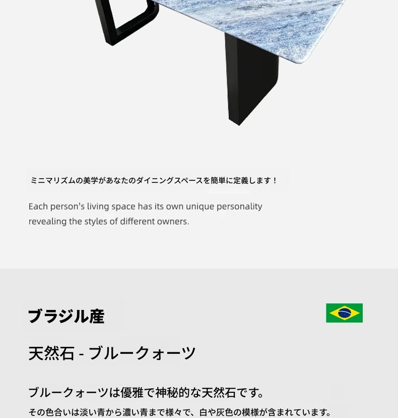 2.4*1.0メートル 天然ブルークォーツ豪華石製ダイニングテーブル