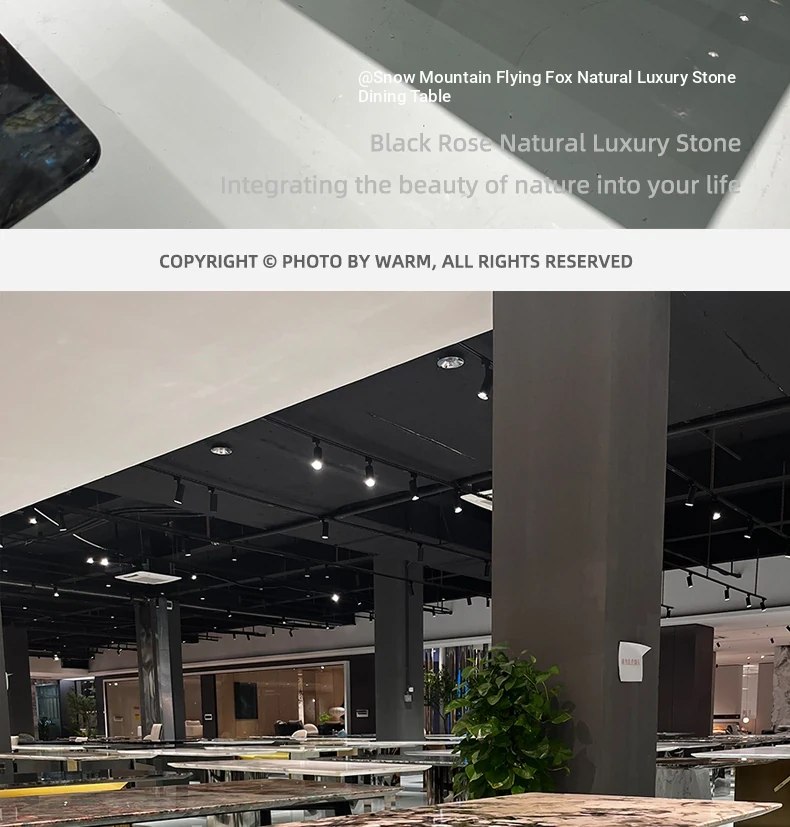 WARM Imported Snow Mountain Flying Fox Silver Fox Blue Sky Mountain Twilight Orchid Luxury Stone Dining Table - Premium Natural Marble Dining Table for Upscale Homes