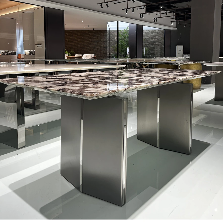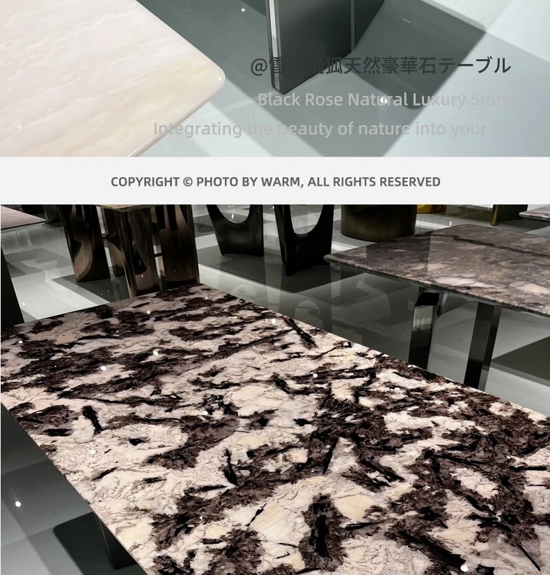 WARM輸入の雪山の飛狐・シルバー・ブルー・天山の夕雪・ラン・ラグジュアリー・ストーン製の天然大理石高級ダイニングテーブル - 優雅で洗練された食卓を演出し、特別なひとときをお届けします。