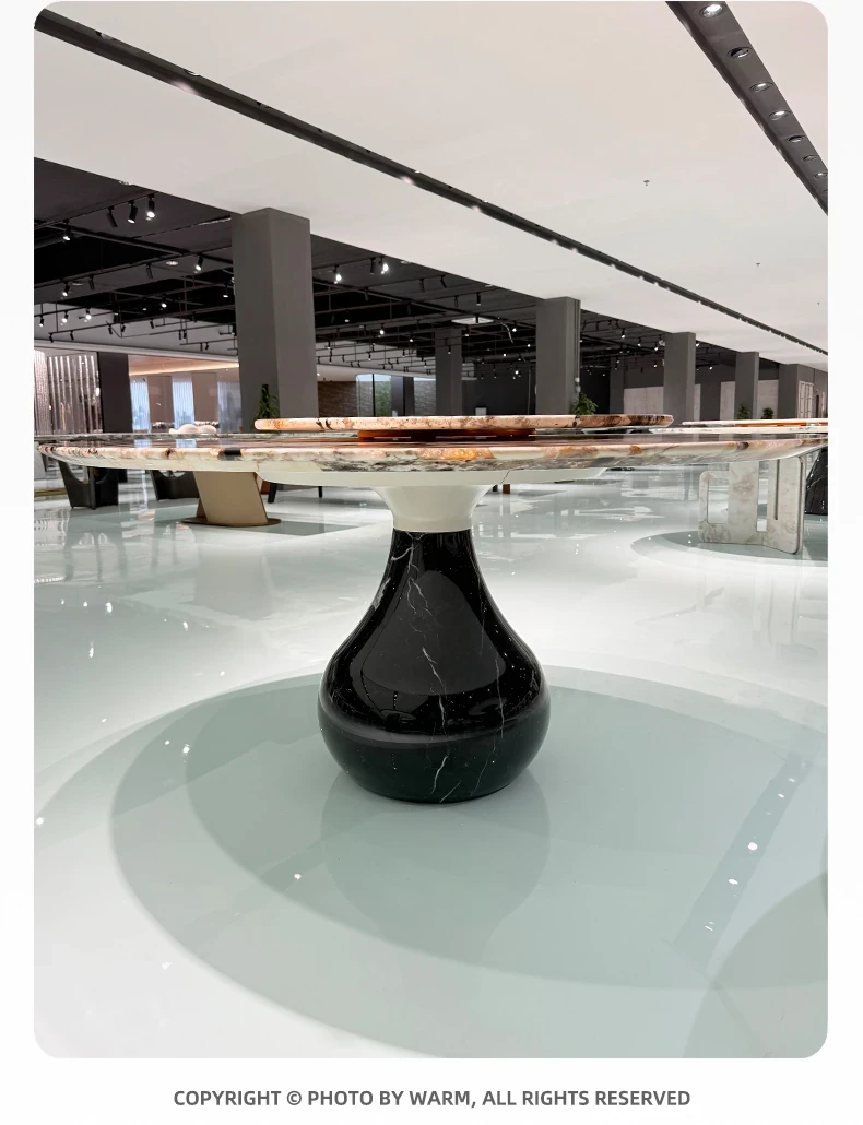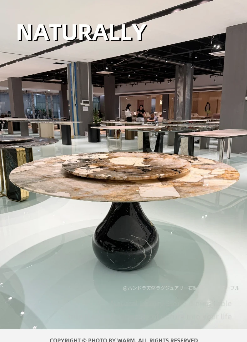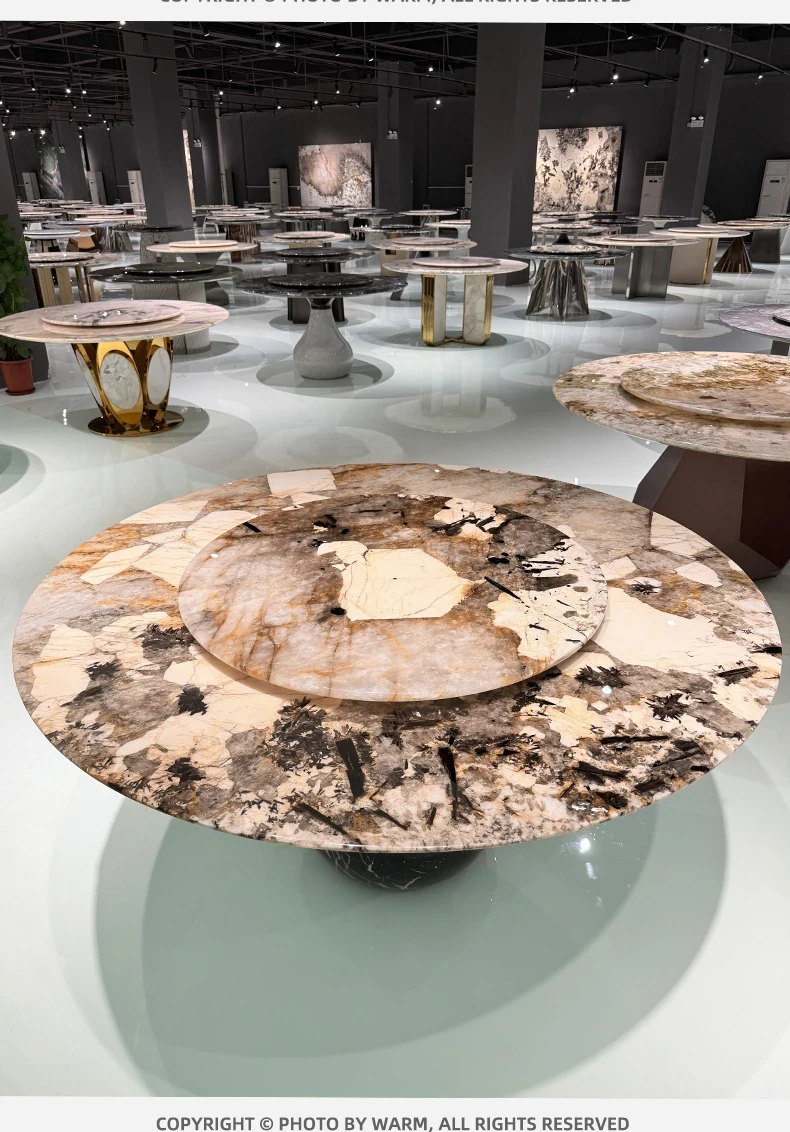 WARM潘多拉高級天然大理石ラウンドテーブル - フォスハンの輸入軽奢華別荘向け、贅沢な食事体験を提供する高級ダイニングテーブル。あなたの空間を一層引き立てる美しさをお楽しみください!