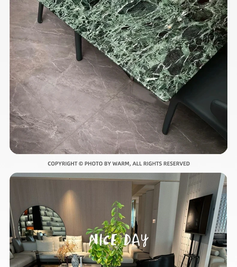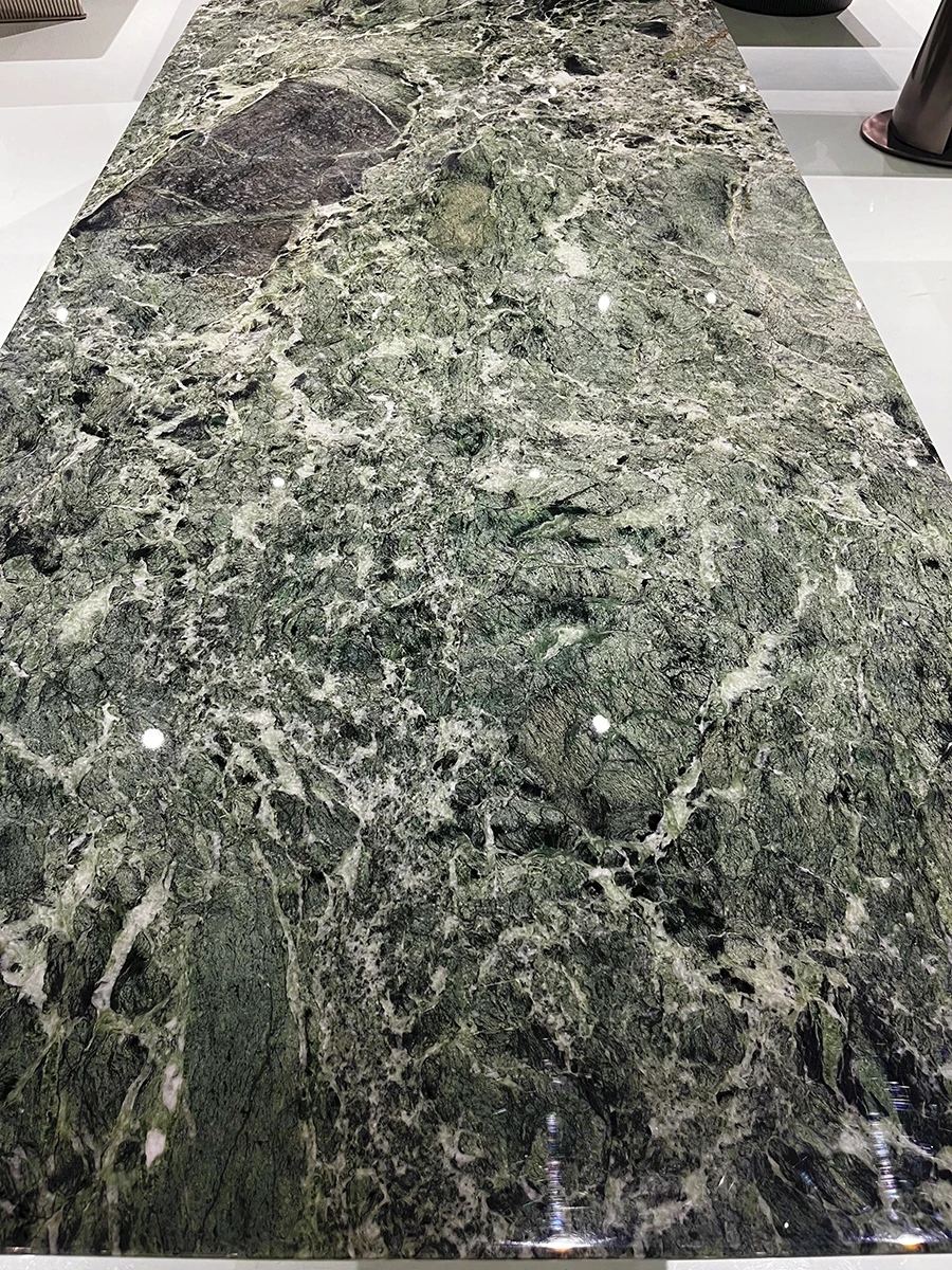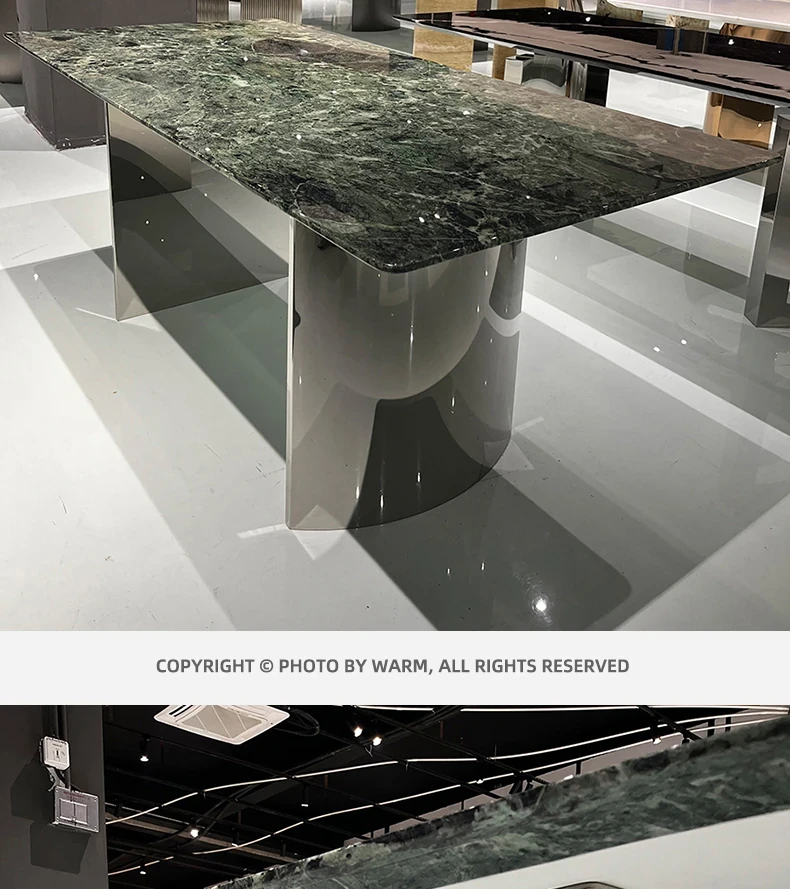 WARMプラダグリーン高級大理石ダイニングテーブル - 輸入軽奢の天然素材、豪華な別荘にぴったりの長方形デザイン!佛山製の高品質な仕上げで、特別な食事のひとときを演出します。