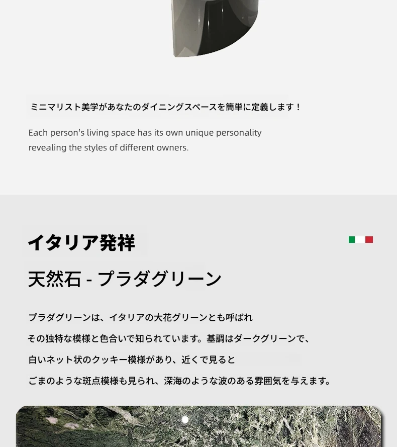 1.8*0.9メートル 天然プラダグリーン高級石製ダイニングテーブル