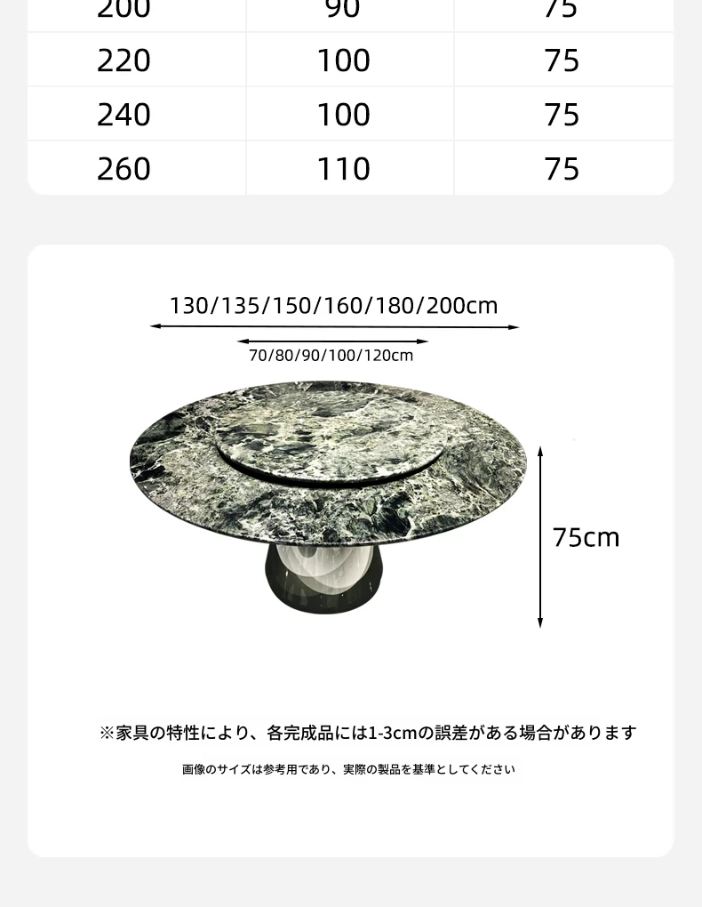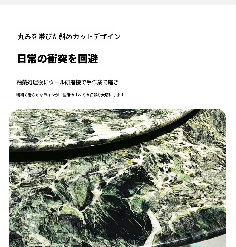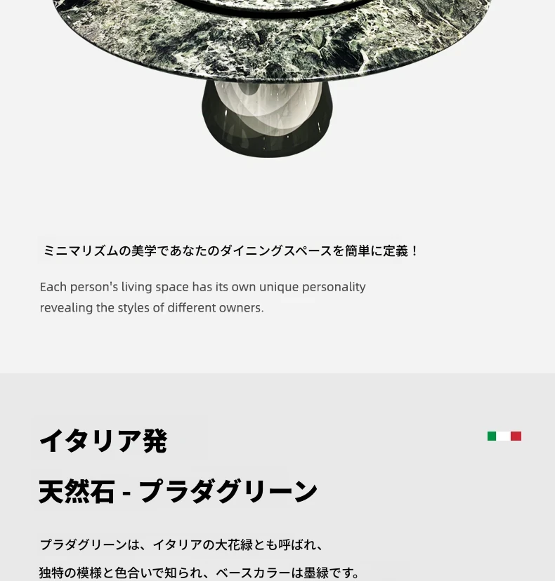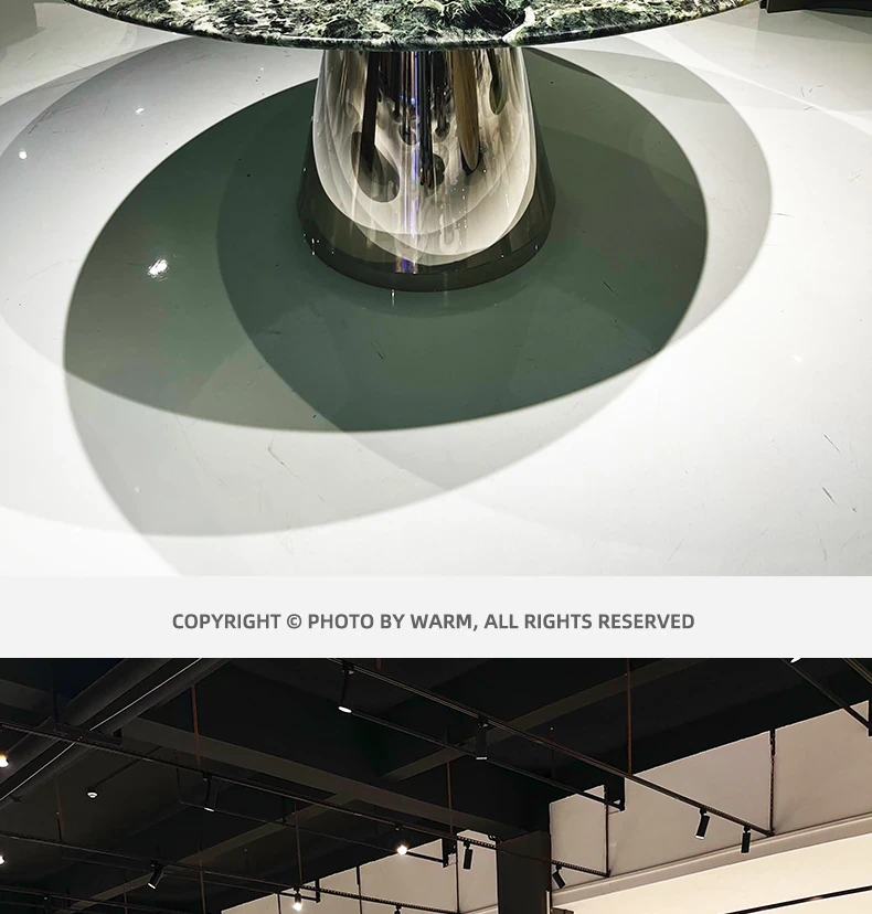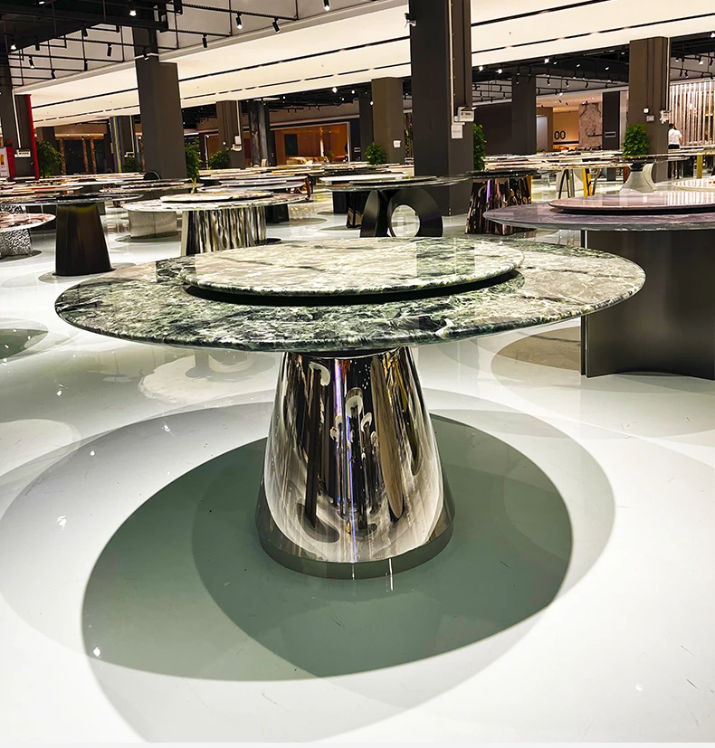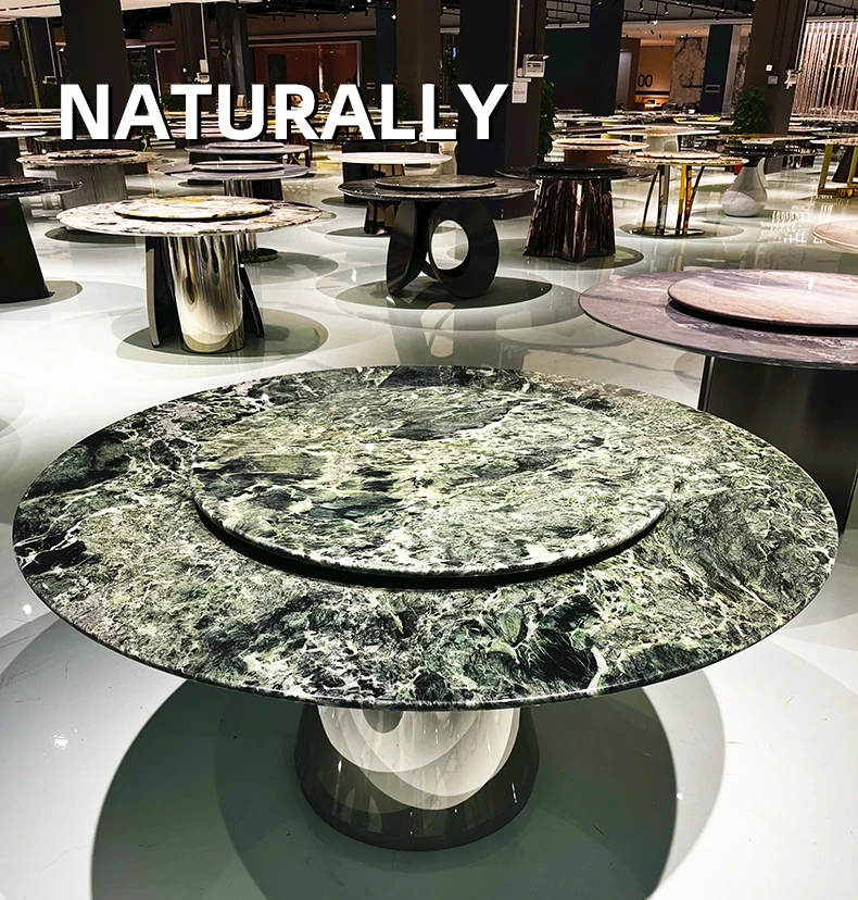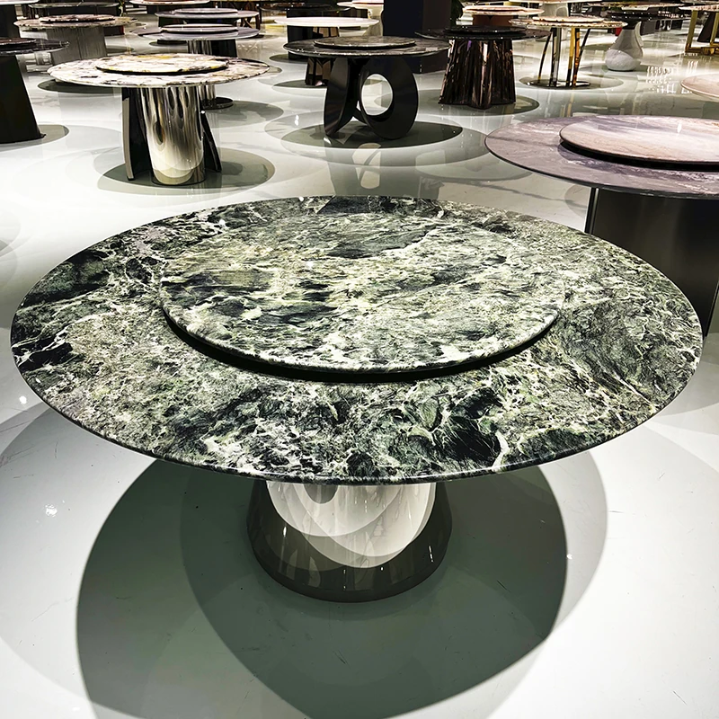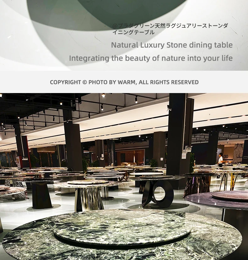 WARM プラダグリーンラグジュアリー大理石ダイニングテーブル - 輸入の天然大理石製、洗練されたデザインで高級感溢れる円形テーブル。佛山の別荘にぴったりの高級ダイニング体験を提供します!